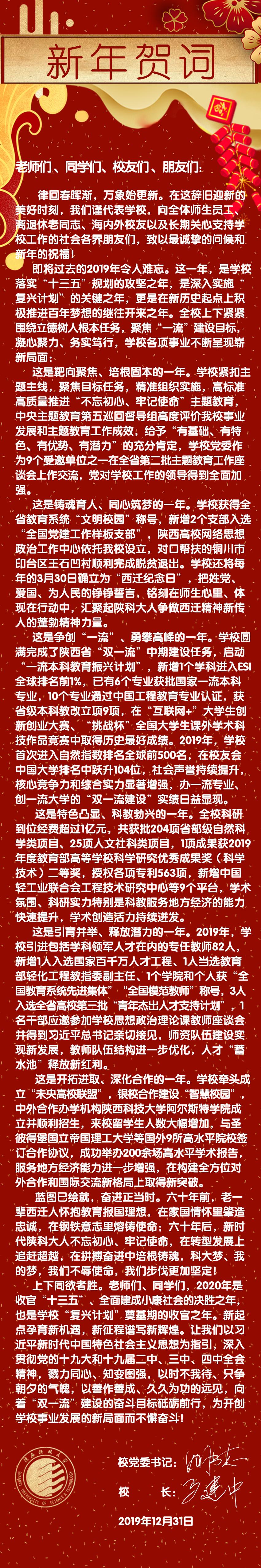 律回春暉漸,萬象始更新。在這辭舊迎新的美好時刻,我們謹代表學校,向全體師生員工、離退休老同志、海內外校友以及長期關心支持學校工作的社會各界朋友們,致以最誠摯的問候和新年的祝福!