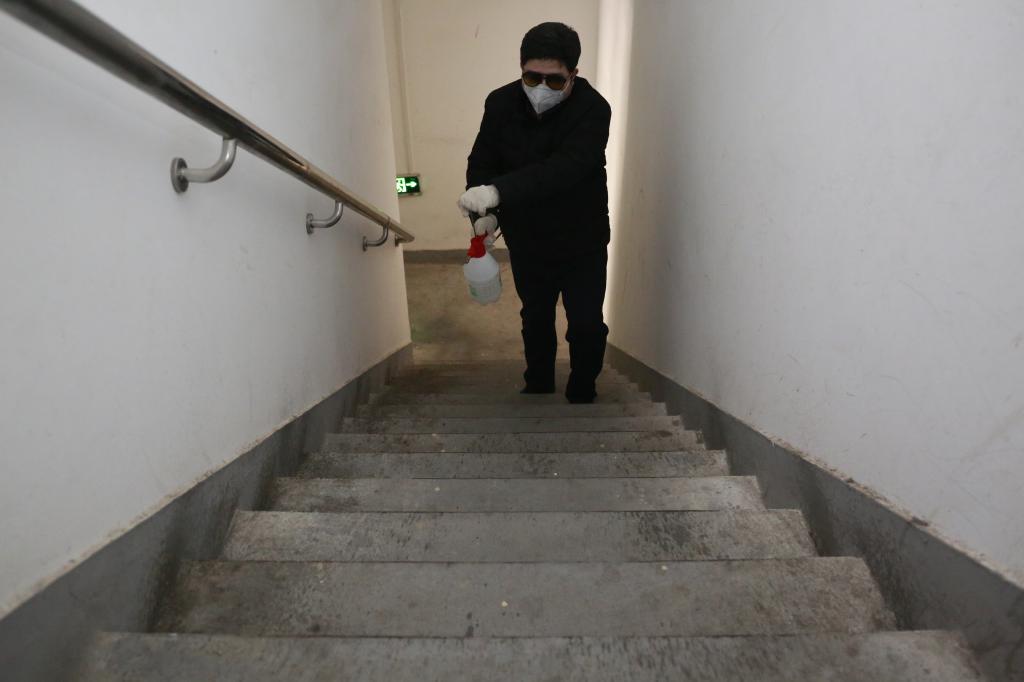 伴隨著疫情形勢不斷嚴峻,防疫工作的要求不斷提高,學校沁園小區(qū)的消毒作業(yè)面積也在不斷擴大,面臨著人手不夠的問題,了解到這個問題,后勤集團全體黨員主動請纓,承擔了沁園小區(qū)23棟樓宇公共區(qū)域的的消毒任務。他們分片包干,每日兩次對各樓層入戶花園、安全通道等公共區(qū)域進行消毒。后勤黨總支一支部書記李小楠每次用量“特別費”,同樣的面積,別的黨員用兩桶,他用四桶。同志們疑惑不解,一到實地觀摩學習,才發(fā)現(xiàn)是他干得特別細致,安全通道的每一層樓梯、入戶花園的邊邊角角、防火門把手,他都要細細噴灑一遍。在李小楠包干的23號樓2個單元,他每天要從1層爬到33層四次,累計2304級臺階,每日消毒面積6600多平方米。幾天下來,腿已經(jīng)很疼痛了,他還風趣地說,“就當是健身了!”
