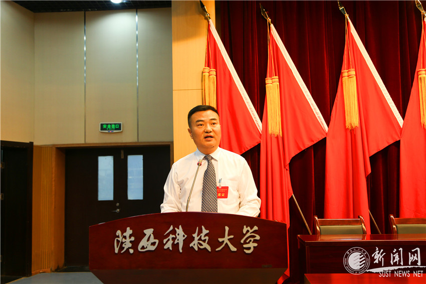姚書志代表中國共產(chǎn)黨陜西科技大學(xué)第一屆委員會向大會作了題為《聚焦轉(zhuǎn)型發(fā)展 奮力追趕超越 為全面建成教學(xué)研究型大學(xué)而不懈奮斗》的報告。報告分“過去工作的回顧及總結(jié)” “面臨的形勢和奮斗目標(biāo)”“今后五年的工作任務(wù)和發(fā)展舉措”“深入推進(jìn)黨的建設(shè),為學(xué)校事業(yè)發(fā)展提供堅強(qiáng)保證”四個部分。