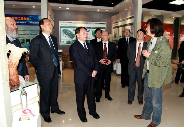 簽約活動之前,部分與會領導和嘉賓參觀了我校校史展覽館、校區(qū)沙盤模型以及設計與藝術學院、資源與環(huán)境學院、材料科學與工程學院特色展室。
