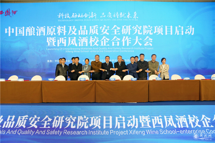 11月14日,由中國(guó)酒業(yè)協(xié)會(huì)主辦,“科技驅(qū)動(dòng)創(chuàng)新,品質(zhì)鑄就未來”為主題,“中國(guó)釀酒原料及品質(zhì)安全研究院”項(xiàng)目啟動(dòng)暨西鳳酒集團(tuán)校企合作大會(huì)在寶雞隆重召開,中國(guó)酒業(yè)協(xié)會(huì)名譽(yù)理事長(zhǎng)王延才、理事長(zhǎng)宋書玉、名譽(yù)理事長(zhǎng)首席技術(shù)顧問季克良,寶雞市長(zhǎng)惠進(jìn)才,中國(guó)工程院院士朱蓓薇,西鳳集團(tuán)董事長(zhǎng)張正、總經(jīng)理賈智勇,我校校長(zhǎng)李志健,天津科技大學(xué)校長(zhǎng)路福平、江南大學(xué)副校長(zhǎng)徐巖等出席了大會(huì)。