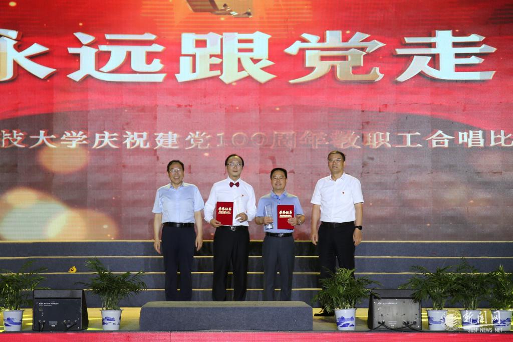 6月29日晚7時(shí)30分,陜西科技大學(xué)慶祝中國共產(chǎn)黨成立100周年教職工合唱比賽在西安校區(qū)標(biāo)準(zhǔn)田徑場舉行。來自學(xué)校工會(huì)委員會(huì)18個(gè)分會(huì)的合唱隊(duì),代表全校教職員工,用歌聲共慶建黨100周年。校黨委書記姚書志,校長李志健,校黨委副書記楊欲曉、王道安,校黨委副書記、紀(jì)委書記、監(jiān)察專員王為民,校黨委副書記郭強(qiáng),副校長王學(xué)川、黃劍鋒、李學(xué)軍、蒲永平,總會(huì)計(jì)師徐曉峰,校長助理鄭恩讓與師生代表齊聚一堂,觀看了精彩的演出,并向獲得比賽一二三等獎(jiǎng)和優(yōu)秀組織獎(jiǎng)的分會(huì)頒發(fā)榮譽(yù)證書。
