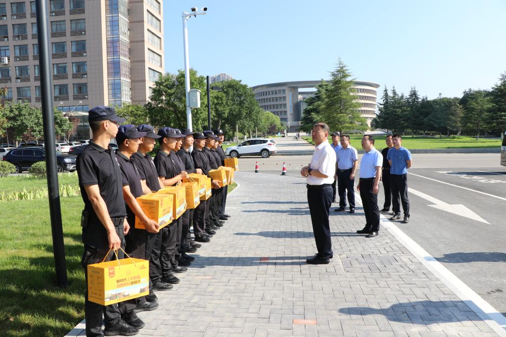 7月25日,校長(zhǎng)李志健、黨委副書(shū)記王道安、副校長(zhǎng)李學(xué)軍深入到高溫天氣下堅(jiān)守工作崗位的一線職工中間,為他們送去夏日的清涼與關(guān)愛(ài)。