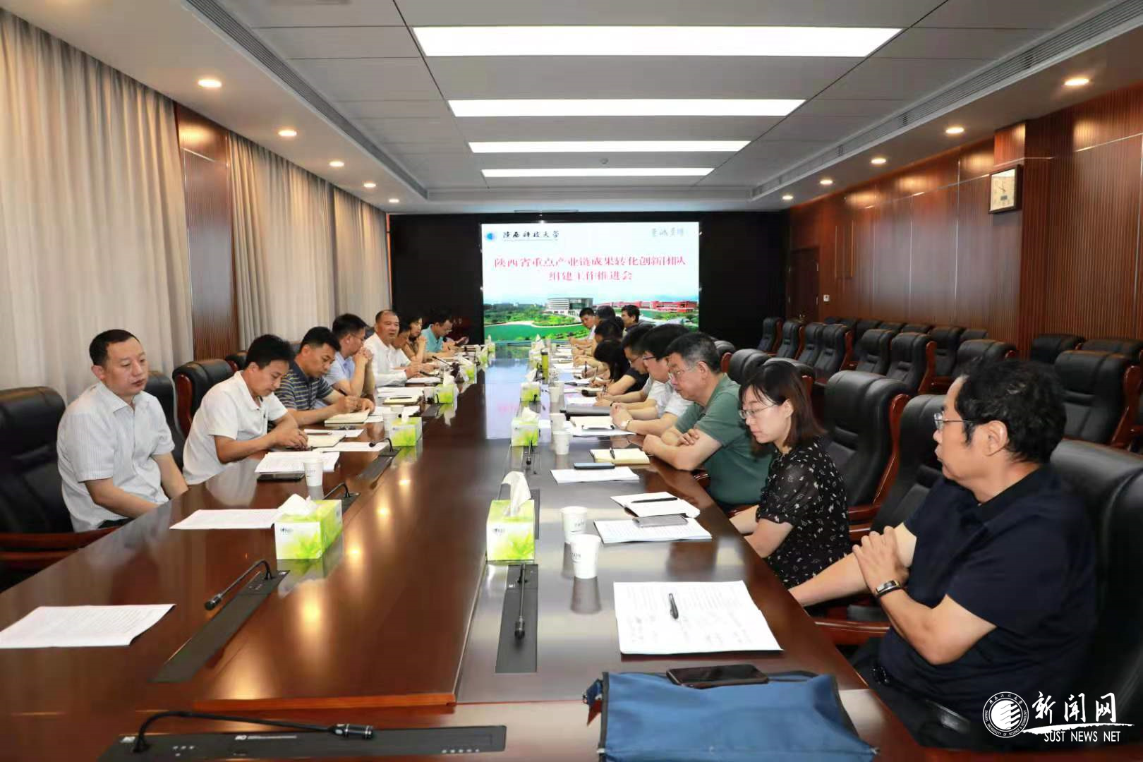 7月20日上午,我校在逸夫樓506會議室召開組建“陜西省重點產(chǎn)業(yè)鏈成果轉(zhuǎn)化創(chuàng)新團隊”工作推進會,全面安排部署推進“陜西省重點產(chǎn)業(yè)鏈成果轉(zhuǎn)化創(chuàng)新團隊”組建工作。校長李志健出席會議并講話,副校長黃劍鋒主持會議,副校長蒲永平、總會計師徐曉峰出席會議。學(xué)校相關(guān)職能部門、二級學(xué)院主要負責(zé)人參加了會議。