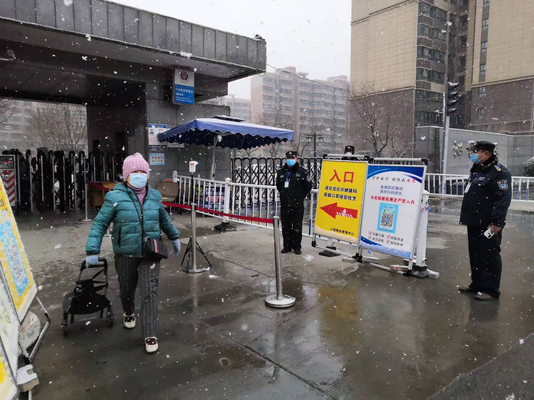 “你好,請(qǐng)您間隔兩米,拉大距離,先測體溫,然后掃碼。”“同志,請(qǐng)您自覺排隊(duì),戴好口罩?!边@些基層服務(wù)人員,冒嚴(yán)寒、測體溫、勤消毒,嚴(yán)管控。做好摸排調(diào)查,重點(diǎn)區(qū)域消殺、社區(qū)衛(wèi)生清掃、水電氣暖保障、應(yīng)急事件處理等。秩序維護(hù)、信息登記、值守執(zhí)勤,這些“規(guī)定動(dòng)作”,他們循環(huán)往復(fù),有張有弛,無一疏漏。