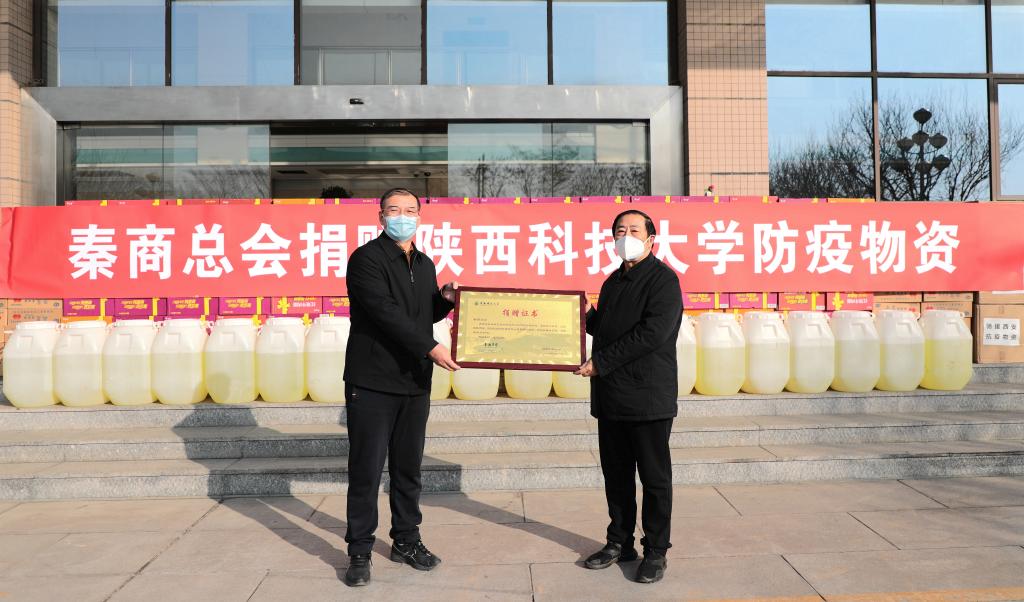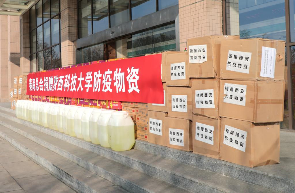 本輪西安疫情下高校師生的安全健康牽動著每一位秦商的心,秦商總會作為全球秦商的總服務(wù)臺、總聯(lián)絡(luò)站、精神總部,得知我校疫情防控物資短缺的情況后,秦商總會聯(lián)合江西省陜西商會、新疆陜西商會、康鴻集團(tuán)捐贈抗疫物資,為合力打贏這場疫情防控阻擊戰(zhàn)貢獻(xiàn)秦商力量,共捐贈醫(yī)用外科口罩20箱、84消毒藥20桶、方便面100箱、番茄醬50箱。