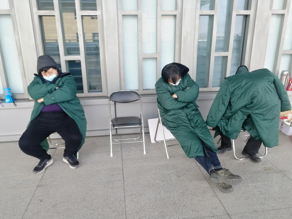 北客站出發(fā)平臺地勢高、風力大,張巖帶領7名青年教師,每天凌天4點起床就出發(fā),迎接我校到站的第一批學生。為了給學生節(jié)省候車時間,他們身穿軍大衣來回奔跑,每人每天要走3萬多步,有的教師累得坐在椅子上就睡著了,送完每天最后一批學生,已經(jīng)是夜里8點了,他們才披星戴月地回學校。