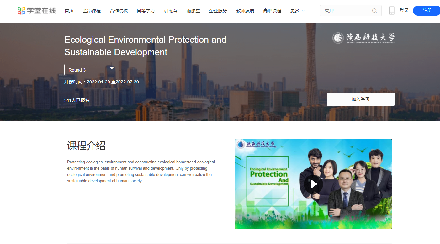 《Ecological Environment Protection and Sustainable Development》課程聚焦目前全球范圍內(nèi)普遍存在的生態(tài)環(huán)境問題、社會發(fā)展與環(huán)境問題、經(jīng)濟(jì)發(fā)展與環(huán)境保護(hù)的關(guān)系、以及水、大氣、固體廢棄物等主要環(huán)境污染問題和污染控制技術(shù)方法。在此基礎(chǔ)上,突出了生態(tài)文明建設(shè)的理念與可持續(xù)發(fā)展的實施路徑,對于學(xué)生了解環(huán)境問題,樹立尊重自然、順應(yīng)自然、保護(hù)自然的生態(tài)文明理念具有積極的意義。