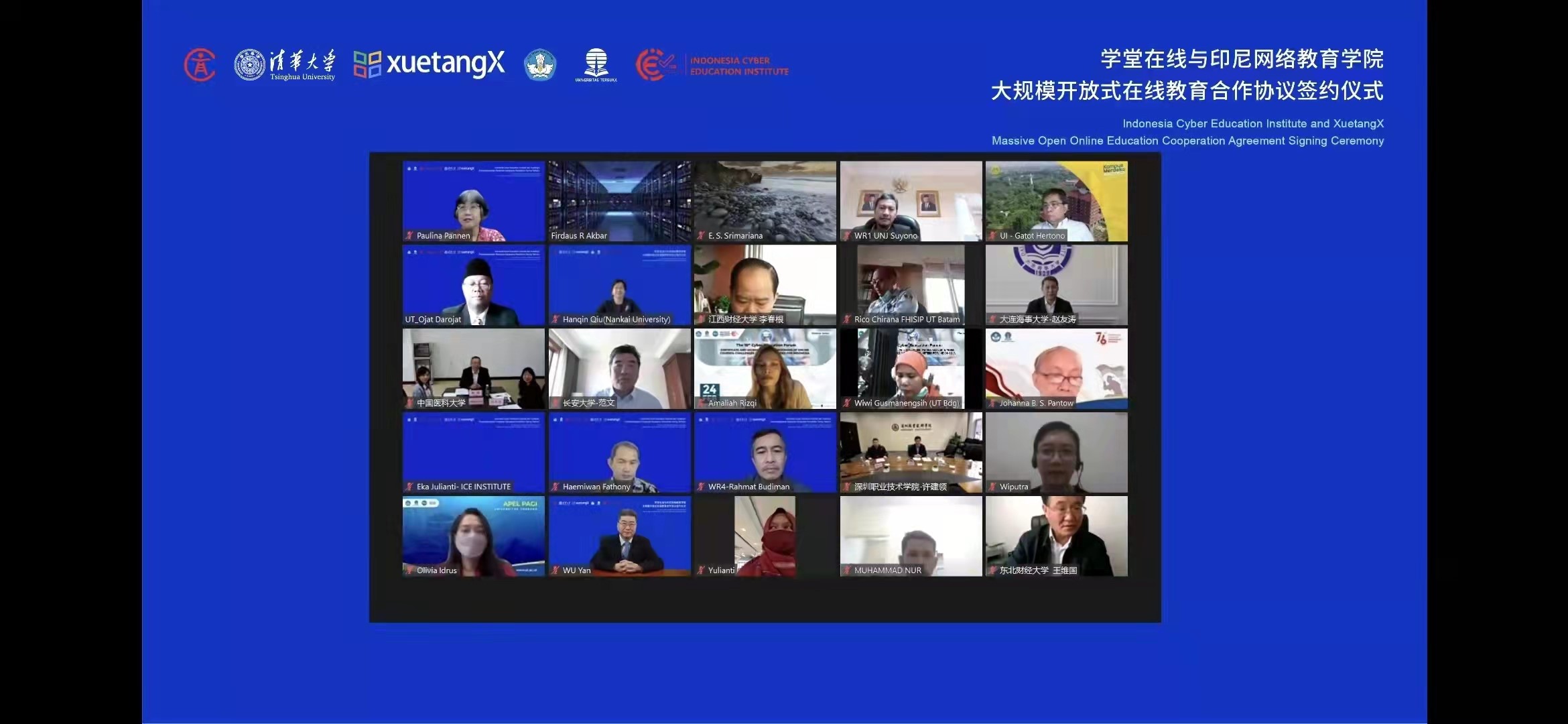 此次會議上,學(xué)堂在線與印度尼西亞國家在線教育平臺印尼網(wǎng)絡(luò)教育學(xué)院達(dá)成合作意向,由學(xué)堂在線攜手中國18所高校,為印尼提供60門全英文授課的高水平慕課,用于印尼網(wǎng)絡(luò)教學(xué)學(xué)院合作成員高校學(xué)生的在線學(xué)習(xí)。我校郭軍康教授負(fù)責(zé)的全英文課程《Ecological Environment Protection and Sustainable Development》入選首批印度尼西亞開放課程,課程團(tuán)隊成員受邀在線出席了活動儀式。