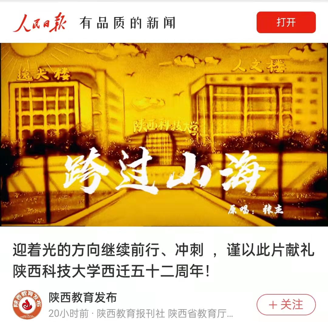 作為西遷高校的一員,學校十分注重從西遷精神中汲取精神力量。為慶祝我校第四個“西遷紀念日”,各學院師生主動創(chuàng)作了一系列網(wǎng)絡文化作品。其中,設藝學院師生創(chuàng)作的微電影《我們的時光里》,以兩代陜科大人的校園生活軌跡為引,用穿越的形式在鏡頭變換中表現(xiàn)了“前人栽樹后人乘涼,我輩當自強”的內(nèi)在故事線;經(jīng)管學院師生創(chuàng)作的音樂MV《跨過山?!?,依托沙畫、舞蹈等多種表現(xiàn)方式,展現(xiàn)了我校從北京到咸陽、從咸陽到西安,扎根西部、服務社會的西遷故事,立體呈現(xiàn)了我校如今的科學研究、文化生活、校園風光、民族團結(jié)等豐富場景。系列網(wǎng)絡文化作品通過生動的校史展現(xiàn)輕工業(yè)史、黨史,引導師生弘揚“西遷精神”,爭做學?!叭齽?chuàng)兩遷”精神新傳人。