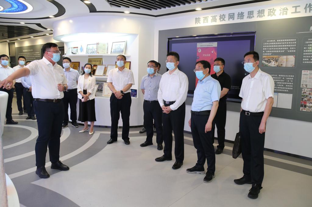 在我校承建的陜西高校網(wǎng)絡(luò)思想政治工作中心(省高校易班發(fā)展中心),方光華現(xiàn)場察看了陜西高校黨委理論學(xué)習(xí)中心組“一學(xué)一做”報(bào)送平臺、陜西高校思政工作申報(bào)評審系統(tǒng)、陜西高校思政課程與課程思政資源共建共享平臺、高校輔導(dǎo)員數(shù)字圖書館等智慧思政教育信息化站群運(yùn)轉(zhuǎn)狀態(tài),詳細(xì)了解了由我校負(fù)責(zé)組織的全省高校師生網(wǎng)絡(luò)尋訪重溫習(xí)近平總書記重要考察足跡活動(dòng)實(shí)施進(jìn)展與我校作為首批試點(diǎn)建設(shè)的全國高校思政課網(wǎng)絡(luò)學(xué)習(xí)平臺研發(fā)進(jìn)度。他強(qiáng)調(diào),省中心要深入貫徹全國、全省高校思想政治工作會(huì)議精神,對標(biāo)繁榮網(wǎng)絡(luò)文化、推動(dòng)共建落地、開展調(diào)查研究、培養(yǎng)網(wǎng)絡(luò)人才四大職能,進(jìn)一步發(fā)揮統(tǒng)籌區(qū)域網(wǎng)絡(luò)思政“三駕馬車”的重要職責(zé),積極參與全國高校思政課綜合改革試驗(yàn)區(qū)建設(shè),推動(dòng)全省高校工作水平再上新臺階。