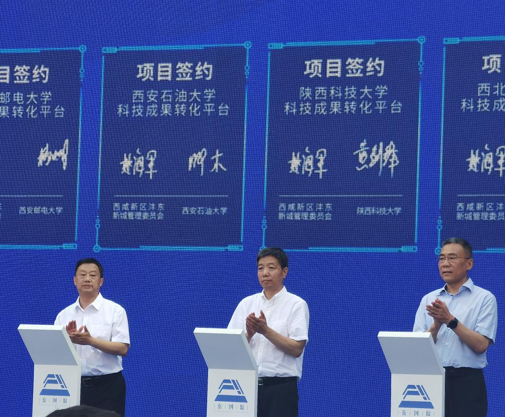 揭牌儀式上,我校與西安交通大學(xué)、西北工業(yè)大學(xué)等8所高校與秦創(chuàng)原立體聯(lián)動(dòng)孵化器總基地簽約。作為全省孵化器的總窗口,秦創(chuàng)原立體聯(lián)動(dòng)孵化器總基地緊盯立體聯(lián)動(dòng)“孵化器”、成果轉(zhuǎn)化“加速器”、兩鏈融合“促進(jìn)器”三大目標(biāo),貫通全省創(chuàng)新資源,吸引知名孵化載體入駐,推動(dòng)科技企業(yè)孵化器市場化、專業(yè)化、品牌化發(fā)展。秦創(chuàng)原立體聯(lián)動(dòng)孵化器總基地建成以來,我校牢牢把握這一發(fā)展契機(jī),依托學(xué)校特色學(xué)科和人才優(yōu)勢,主動(dòng)謀劃融入秦創(chuàng)原平臺建設(shè),入駐灃東新城立體聯(lián)動(dòng)孵化器總基地,努力打造“政產(chǎn)學(xué)研用”深度融合生態(tài),積極服務(wù)陜西經(jīng)濟(jì)社會發(fā)展。