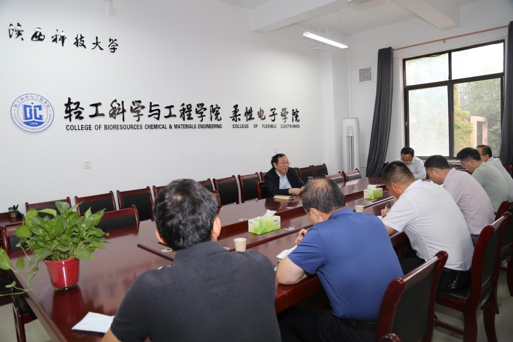 上午10點(diǎn),姚書(shū)志來(lái)到輕工學(xué)院,與學(xué)院班子成員進(jìn)行座談交流。他聽(tīng)取了學(xué)院新學(xué)期準(zhǔn)備工作及科研項(xiàng)目申報(bào)、學(xué)科專業(yè)建設(shè)等重點(diǎn)工作的開(kāi)展情況匯報(bào)。姚書(shū)志指出,輕工學(xué)院要居安思危、認(rèn)清形勢(shì),勇于變革、大膽創(chuàng)新,錨定發(fā)展目標(biāo),矢志攻堅(jiān)克難,在抓好幾項(xiàng)重點(diǎn)工作上持續(xù)發(fā)力。一是在做好國(guó)家自然科學(xué)基金申報(bào)工作的同時(shí),不斷出實(shí)招拓展橫向項(xiàng)目,更加主動(dòng)地投身服務(wù)地方經(jīng)濟(jì)社會(huì)發(fā)展的主戰(zhàn)場(chǎng)。二是要搶抓機(jī)遇,做好學(xué)科、人員和專業(yè)結(jié)構(gòu)調(diào)整,充分依托院士工作室助推柔性電子學(xué)等學(xué)科專業(yè)建設(shè),不斷推進(jìn)學(xué)院高質(zhì)量發(fā)展。