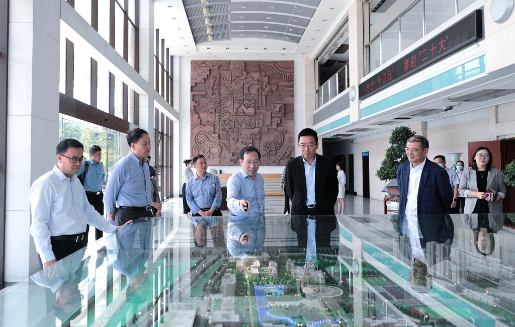 李志健、黃劍鋒陪同蒙震一行先后參觀考察了我校分析測(cè)試中心、圖書智慧管理系統(tǒng)、網(wǎng)絡(luò)思想政治工作中心、中心機(jī)房及智慧教室的建設(shè)與使用情況。在分析測(cè)試中心,蒙震一行參觀了各個(gè)重點(diǎn)實(shí)驗(yàn)室,詳細(xì)了解了各高精尖儀器設(shè)備的購(gòu)置背景和用途等情況。圖書館館長(zhǎng)王海剛向蒙震一行介紹了智慧圖書館平臺(tái)、大數(shù)據(jù)分析系統(tǒng)的建設(shè)情況,現(xiàn)場(chǎng)展示了實(shí)時(shí)的入館人數(shù)、借閱量、借閱排行等數(shù)據(jù)。在網(wǎng)絡(luò)思想政治工作中心,中心主任李萌詳細(xì)介紹了網(wǎng)絡(luò)文明研究中心、優(yōu)質(zhì)網(wǎng)絡(luò)文化精準(zhǔn)供給轉(zhuǎn)化中心、精準(zhǔn)賦能實(shí)踐中心和各個(gè)應(yīng)用學(xué)習(xí)平臺(tái)的建設(shè)情況。信息與網(wǎng)絡(luò)管理中心主任李健詳細(xì)介紹由中國(guó)銀行投資的設(shè)備及運(yùn)行情況。在阿爾斯特學(xué)院,蒙震一行參觀了PBL教室、計(jì)算機(jī)多用途教室、觀摩室等地,院長(zhǎng)薛朝華在研討型互動(dòng)教室向蒙震一行展示介紹了多屏互動(dòng)投屏系統(tǒng)。蒙震對(duì)我校盤活資金投入教學(xué)科研,改善辦學(xué)條件,提高數(shù)字化國(guó)際化辦學(xué)能力的建設(shè)成效予以高度贊譽(yù)。