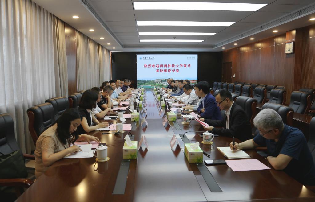 5月30日,西南科技大學(xué)校長(zhǎng)黃琦、副校長(zhǎng)代波一行來??疾旖涣?。交流座談會(huì)在逸夫樓506會(huì)議室舉行,校長(zhǎng)李志健出席座談會(huì)并致歡迎辭。校黨委副書記郭強(qiáng)主持座談會(huì)。
