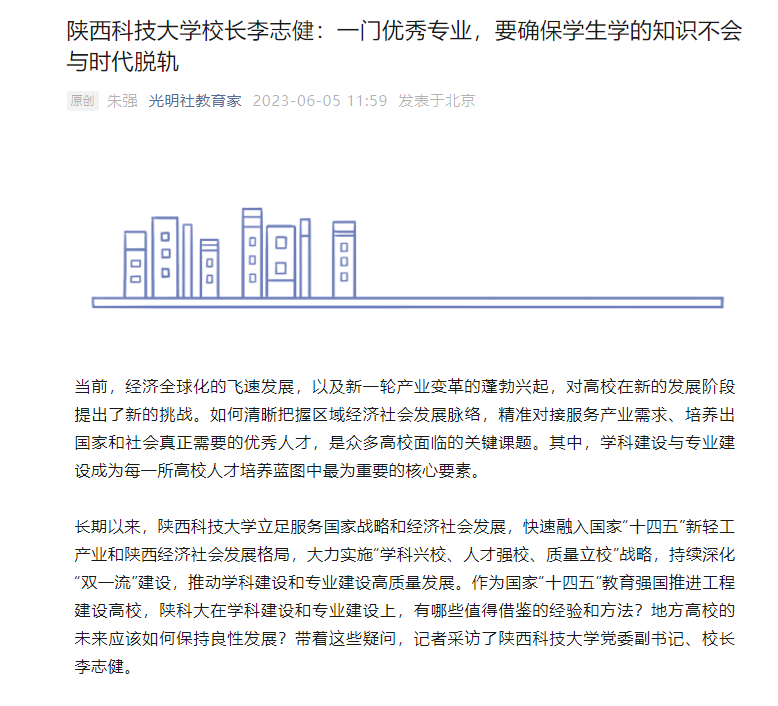 光明社《教育家》官方微信平臺:陜西科技大學(xué)校長李志?。阂婚T優(yōu)秀專業(yè),要確保學(xué)生學(xué)的知識不會與時(shí)代脫軌