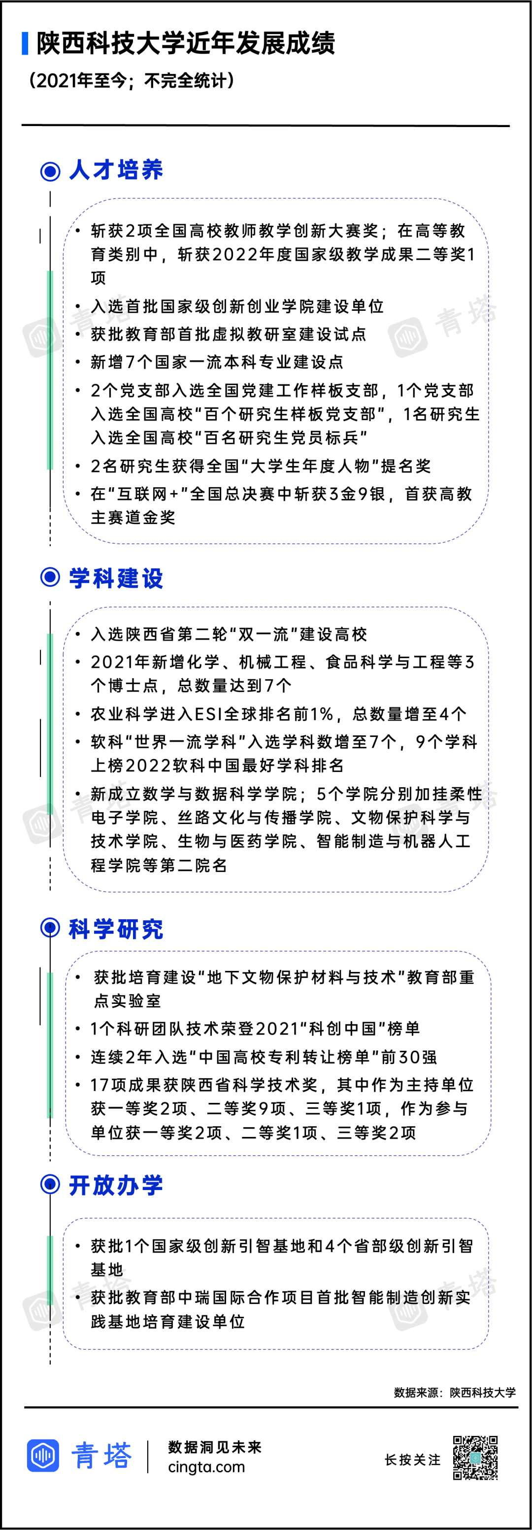 6月8日,國(guó)內(nèi)知名高等教育新媒體平臺(tái)“青塔”在其微信公眾號(hào)推送《這所老牌強(qiáng)校,邁向國(guó)家“第一梯隊(duì)”!》一文,從昔日榮光、復(fù)興之路、今日科大三個(gè)版塊全面回顧我校在65年的辦學(xué)歷史中與祖國(guó)命運(yùn)緊密相連的發(fā)展歷程,以一系列專(zhuān)業(yè)翔實(shí)的數(shù)據(jù)系統(tǒng)盤(pán)點(diǎn)了學(xué)校近年來(lái)在人才培養(yǎng)、學(xué)科建設(shè)、科學(xué)研究、開(kāi)放辦學(xué)等方面的表現(xiàn)和成就。文中稱“2022年,陜西科技大學(xué)輕工技術(shù)與工程學(xué)科邁入國(guó)家“第一梯隊(duì)”,多個(gè)學(xué)科提檔升級(jí),又一次實(shí)現(xiàn)了歷史性的突破。不矜不伐,厚積薄發(fā)。這所以輕工為特色的老牌強(qiáng)校,已昂首踏上復(fù)興的新征程!”,全文如下: