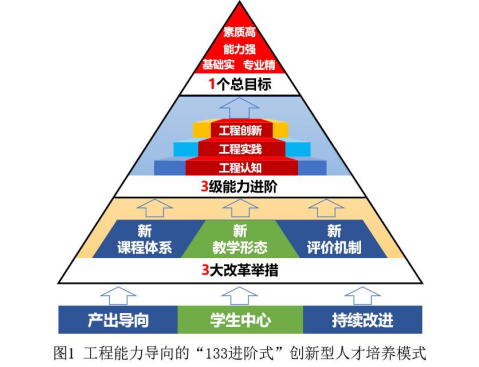 “工程能力導(dǎo)向的地方高?!?33進(jìn)階式’創(chuàng)新型人才培養(yǎng)模式探索與實(shí)踐”教學(xué)成果以“學(xué)生中心、產(chǎn)出導(dǎo)向、持續(xù)改進(jìn)”的人才培養(yǎng)理念為引領(lǐng),針對(duì)區(qū)域經(jīng)濟(jì)與行業(yè)發(fā)展需求,確定了“基礎(chǔ)實(shí)、專業(yè)精、能力強(qiáng)、素質(zhì)高”的工科創(chuàng)新型人才培養(yǎng)總目標(biāo),遵循人才成長規(guī)律,設(shè)計(jì)了“工程認(rèn)知、工程實(shí)踐、工程創(chuàng)新”三級(jí)進(jìn)階工程能力發(fā)展路徑,實(shí)施“新課程體系、新教學(xué)形態(tài)、新評(píng)價(jià)機(jī)制”為主的三大改革舉措,面向全校工科專業(yè)學(xué)生開展教學(xué)綜合改革,探索并踐行地方高校創(chuàng)新型人才培養(yǎng)新模式。