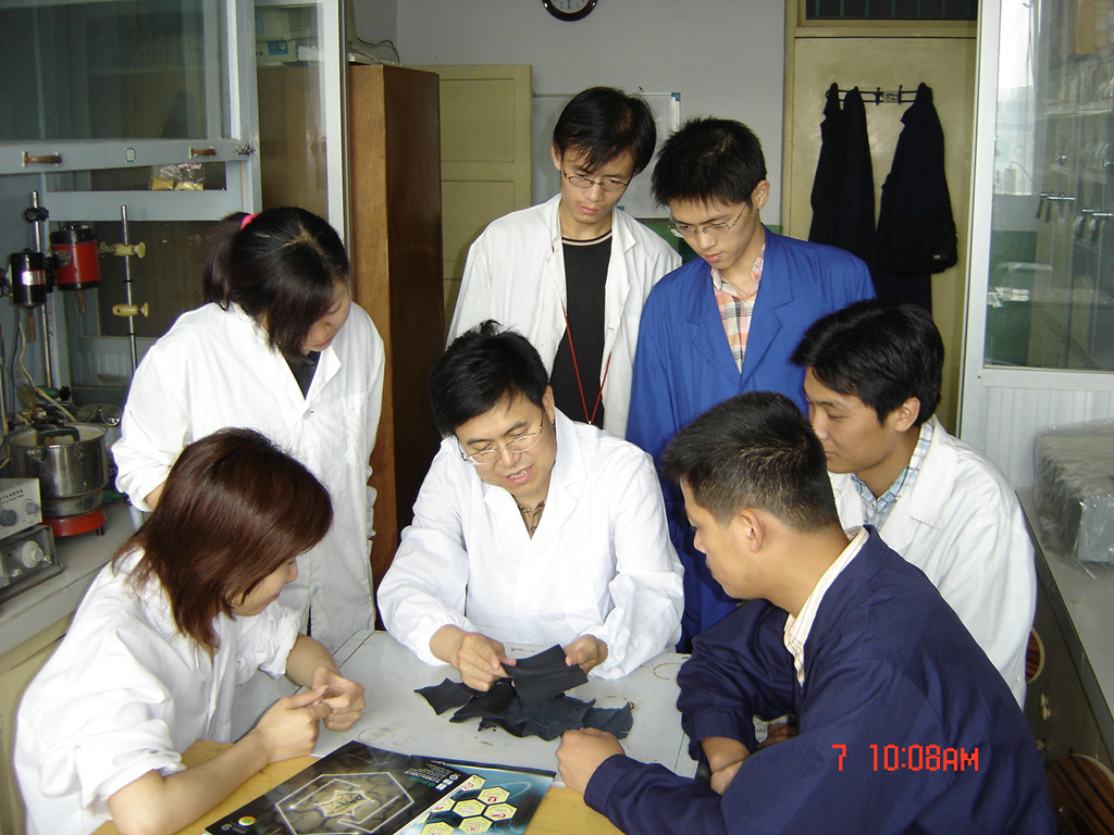 團(tuán)隊骨干教師呂斌講起20年前的一次化學(xué)實驗還記憶猶新:“有一天我在實驗室測試新研發(fā)的‘有機(jī)無機(jī)納米復(fù)合鞣劑’時,意外發(fā)現(xiàn)該鞣劑可以使皮革鞣制在無鉻情況下達(dá)到比平時高得多的收縮溫度,立刻驚喜地報告給馬老師,但馬老師并沒有立即相信,而是表情嚴(yán)肅地走上試驗臺,反復(fù)驗證了五六次,每一個細(xì)節(jié)都極其投入,連頭發(fā)被電爐燒著了都渾然不覺,確保真實無誤后,才露出欣喜的笑容。秉持這種求實精神,我們團(tuán)隊從來不盲從、盲信、唯論文、唯‘帽子’,在學(xué)術(shù)報告、發(fā)表論文中堅持‘三不用’——未經(jīng)實驗驗證過的數(shù)據(jù)不用,模棱兩可的說法和結(jié)論不用,有矛盾的數(shù)據(jù)和結(jié)論不用?!?/p>