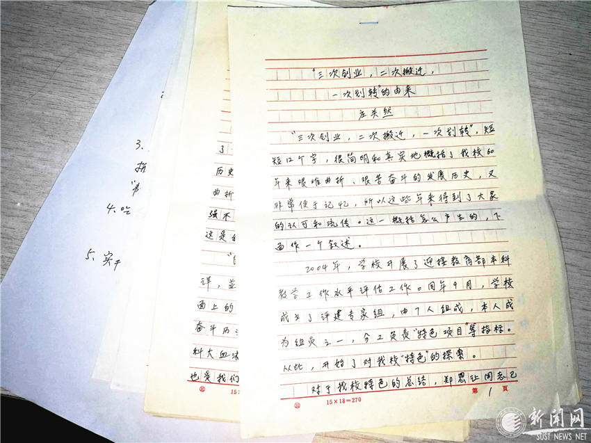 莊關(guān)然教授在受邀為學(xué)校大學(xué)精神的凝練提交建議時,不顧年事已高,于9月13日至15日連寫了《關(guān)于“三次創(chuàng)業(yè),兩次搬遷,一次劃轉(zhuǎn)”的由來》等四封信,敘述有關(guān)歷史細節(jié),提出自己的觀點??傆?000余字的信件,73歲的老人完全是用工筆正楷書寫的,文字秀麗,頁面整潔??梢韵胂蟮剑辖淌谑窃谏钏际鞈]后一氣呵成,寫出了忠誠,寫就了愛校榮校的真性情。