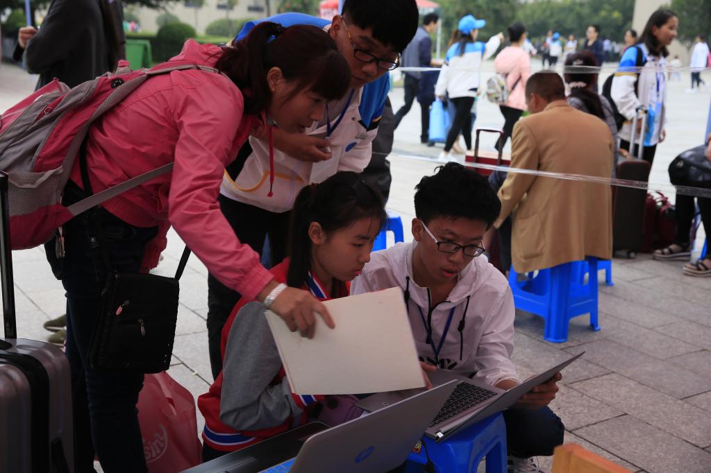位于迎賓大道的各學(xué)院(部)迎新接待點(diǎn)是2017年迎新工作的主陣地,姚書志向現(xiàn)場(chǎng)的工作人員詳細(xì)了各學(xué)院、專業(yè)新生的報(bào)名情況,對(duì)各學(xué)院、有關(guān)職能部門在迎新工作中的惠生便民的新思路、新做法給予肯定。記者在現(xiàn)場(chǎng)看到,各學(xué)院(部)迎新工作順利開展,報(bào)到流程指示牌懸掛明晰,現(xiàn)場(chǎng)井然有序,截止中午12點(diǎn),各學(xué)院新生報(bào)到人數(shù)已超過85%。