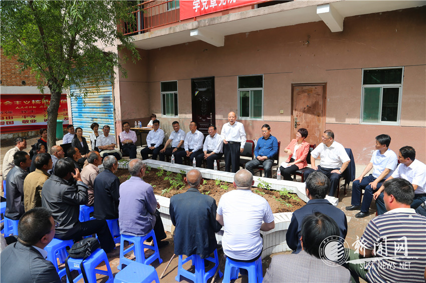 在聽取了學(xué)校駐村工作隊(duì)隊(duì)長雷如關(guān)于駐村扶貧工作,駐村“第一書記”王先鋒關(guān)于黨建、兩委工作情況,王石凹村黨支部書記石輝關(guān)于該村情況以及王石凹街道黨委書記楊彩虹關(guān)于脫貧攻堅(jiān)幫扶工作情況的匯報(bào)后,潘中偉在講話中對村民群眾致以親切的問候,對區(qū)委、街道辦黨委對學(xué)校扶貧工作隊(duì)的支持表示感謝。潘中偉指出,作為學(xué)校扶貧工作領(lǐng)導(dǎo)小組組長,再次來到王石凹村,和學(xué)校黨政領(lǐng)導(dǎo)班子成員一起來結(jié)親交友。習(xí)近平總書記多次強(qiáng)調(diào),“小康不小康,關(guān)鍵看老鄉(xiāng)”。學(xué)校從1996年開始開展扶貧工作,20年來,已幫扶咸陽市永壽縣三個(gè)村、印臺區(qū)三個(gè)村全部脫貧。2014年6月開始對王石凹村開展幫扶,在指導(dǎo)村民開展養(yǎng)殖業(yè)、發(fā)展中草藥、核桃和花椒經(jīng)濟(jì)產(chǎn)業(yè)、提供科技咨詢、移民搬遷以及加強(qiáng)基層黨組織建設(shè)等具體幫扶工作中取得了明顯的工作成效。陜西科技大學(xué)黨委將一如既往地承擔(dān)好脫貧攻堅(jiān)政治責(zé)任,堅(jiān)決完成中央、省委交給的工作任務(wù)。潘中偉強(qiáng)調(diào),此行還是慰問交流之行。學(xué)校全體領(lǐng)導(dǎo)班子成員來到王石凹村,一是慰問全體鄉(xiāng)親,二是慰問駐村“第一書記”和學(xué)校駐村扶貧工作隊(duì),三是與特別貧困戶結(jié)為“一對一”幫扶對子,了解具體情況,分析致貧原因,探索脫貧致富途徑,目的就是按照共享發(fā)展的理念,心系鄉(xiāng)親,在學(xué)校改革發(fā)展的同時(shí),認(rèn)真打好脫貧攻堅(jiān)戰(zhàn),堅(jiān)決履行好黨員領(lǐng)導(dǎo)干部“兩學(xué)一做”真學(xué)真做的職責(zé)義務(wù)。