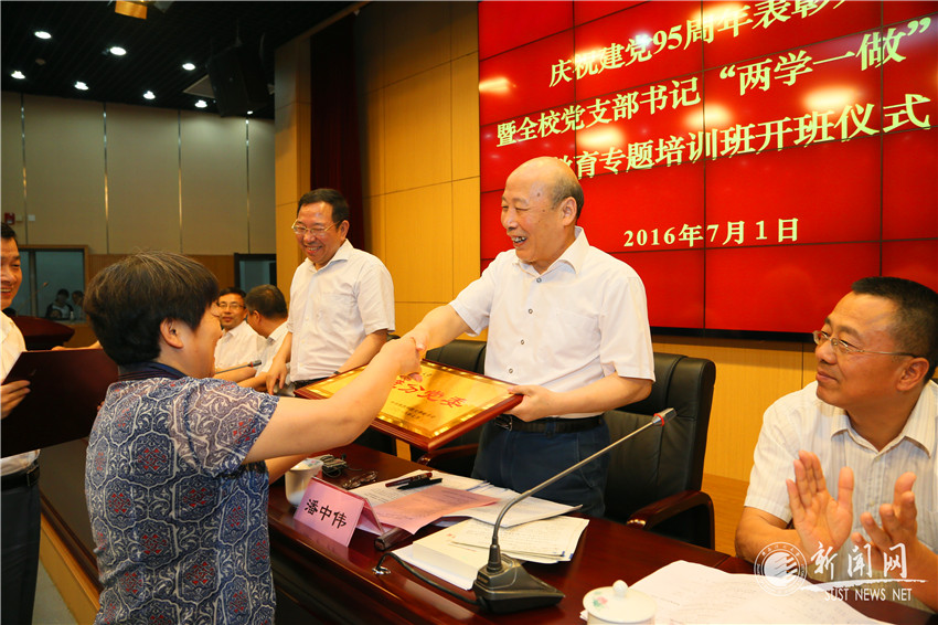姚書志在主持會(huì)議并總結(jié)講話時(shí)強(qiáng)調(diào),在“七一”這個(gè)偉大的日子,我們齊聚一堂,慶祝黨的生日,表彰先進(jìn),分享經(jīng)驗(yàn),安排部署即將全面推開的“兩學(xué)一做”學(xué)習(xí)教育黨支部書記專題培訓(xùn),目的就是進(jìn)一步動(dòng)員廣大黨員干部圍繞學(xué)校全國(guó)第四輪學(xué)科評(píng)估、本科教學(xué)審核評(píng)估等重要工作,發(fā)揮先鋒模范作用,立足崗位做貢獻(xiàn),以實(shí)際行動(dòng)投身到學(xué)?!八膫€(gè)一流”建設(shè)上來(lái),不斷開創(chuàng)學(xué)校改革發(fā)展的新局面。他要求,各級(jí)黨組織和廣大共產(chǎn)黨員要在黨員領(lǐng)導(dǎo)干部帶頭講黨課和帶頭推動(dòng)“兩學(xué)一做”學(xué)習(xí)教育的“兩個(gè)帶頭”、抓好黨支部和抓好黨支部書記的“兩個(gè)抓好”、結(jié)合中心工作和結(jié)合工作實(shí)際的“兩個(gè)結(jié)合”上認(rèn)真貫徹落實(shí)會(huì)議精神,把推動(dòng)工作落實(shí)作為檢驗(yàn)學(xué)習(xí)教育成效的重要標(biāo)準(zhǔn)。