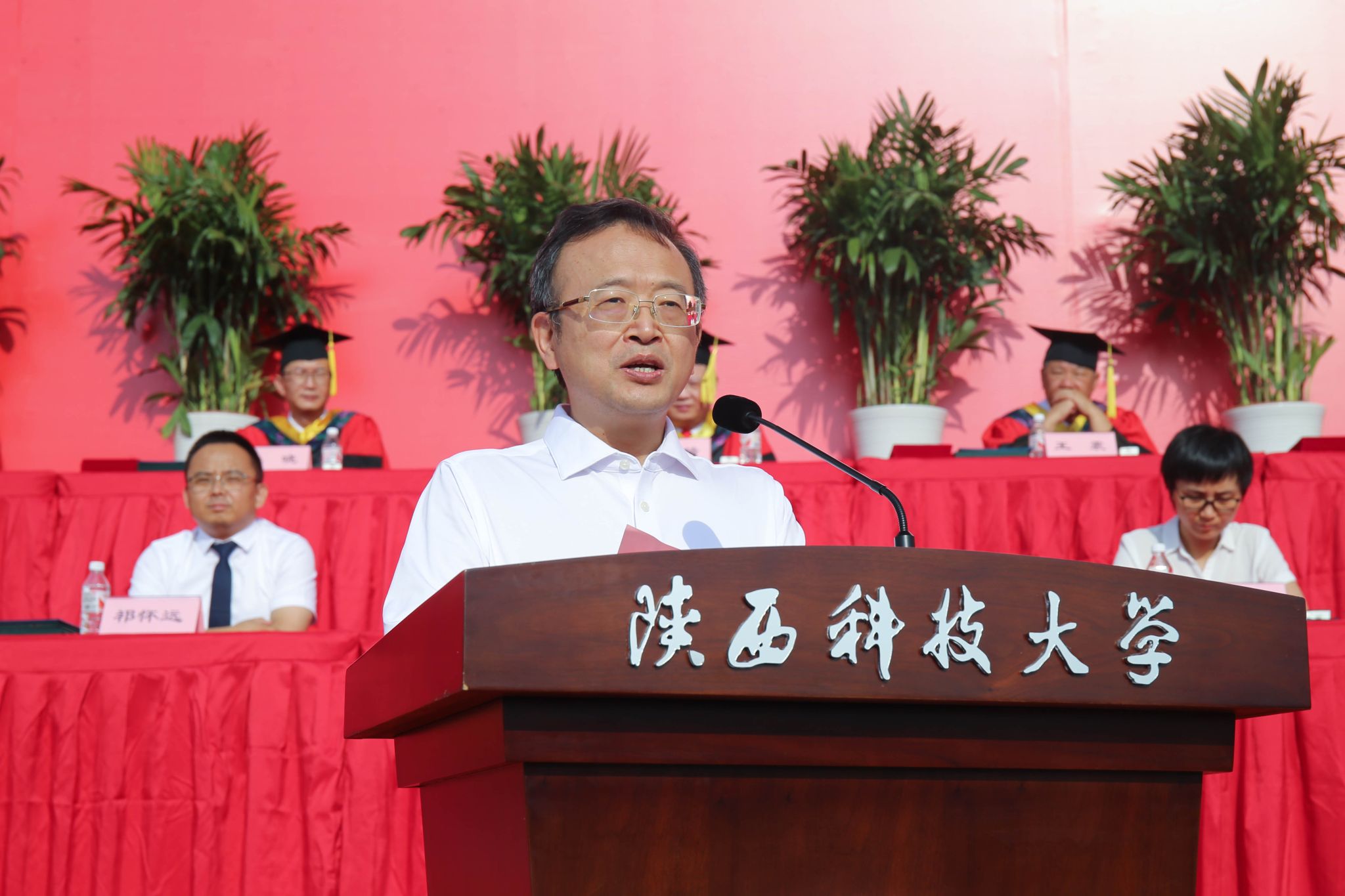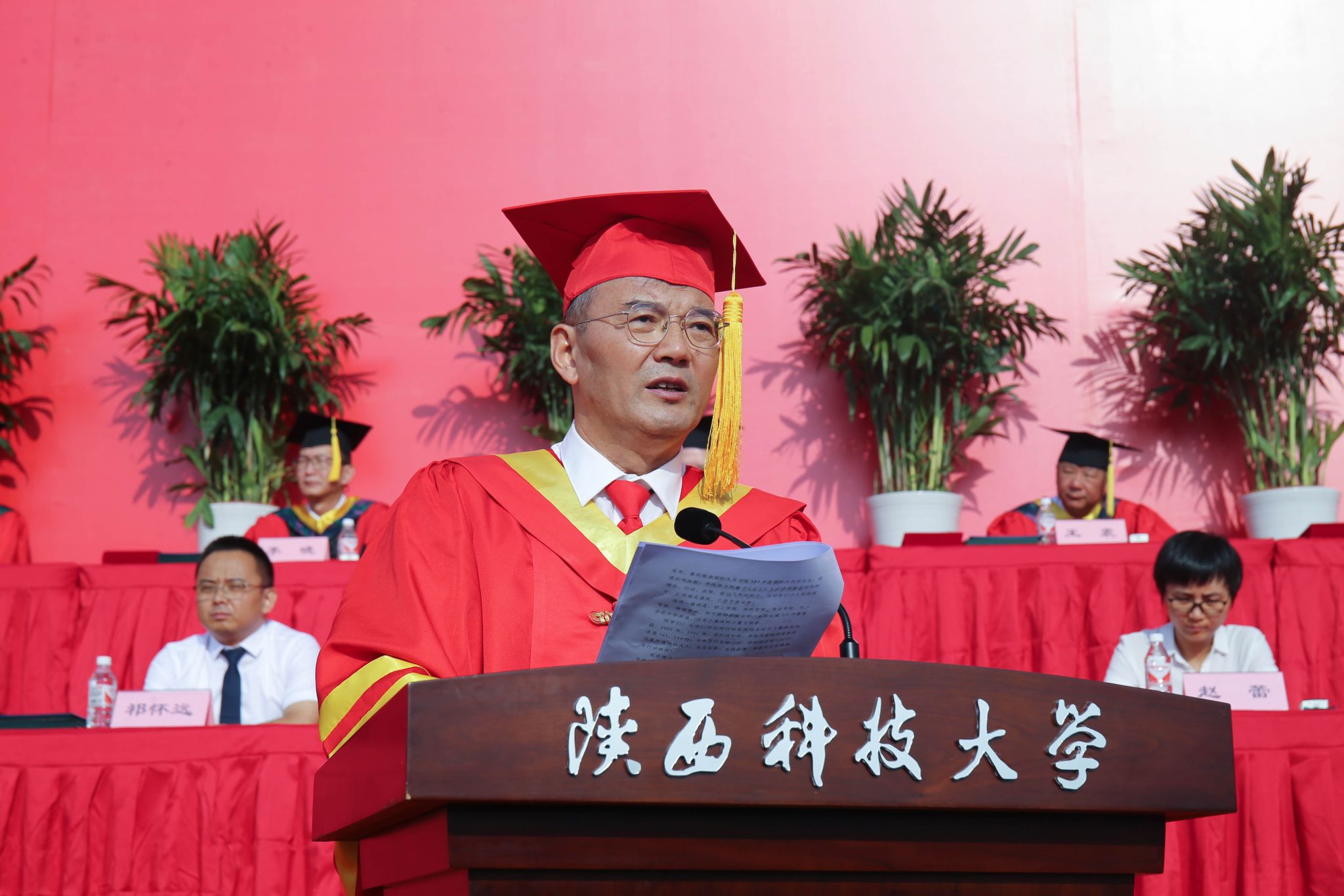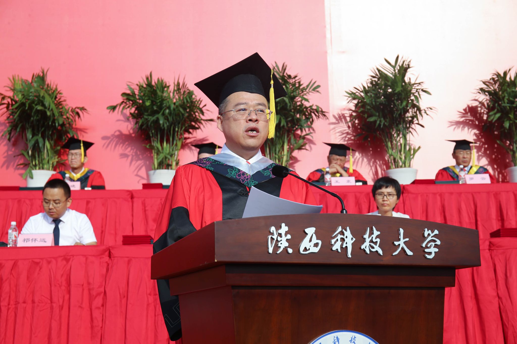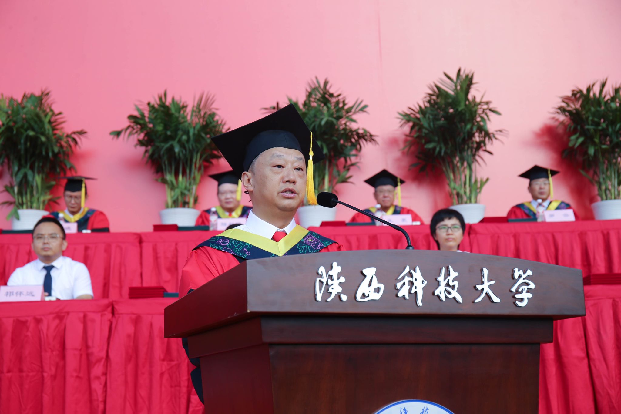 副校長黃劍鋒宣讀“陜西科技大學(xué)關(guān)于授予2024屆博士、碩士、學(xué)士學(xué)位的決定”及“陜西科技大學(xué)關(guān)于批準(zhǔn)2024年優(yōu)秀碩士學(xué)位論文的決定”,學(xué)校授予53名研究生博士學(xué)位、1360名研究生碩士學(xué)位、1名國際研究生博士學(xué)位和6名國際研究生碩士學(xué)位、4558名本科生學(xué)士學(xué)位;批準(zhǔn)122篇學(xué)位論文為優(yōu)秀碩士學(xué)位論文。