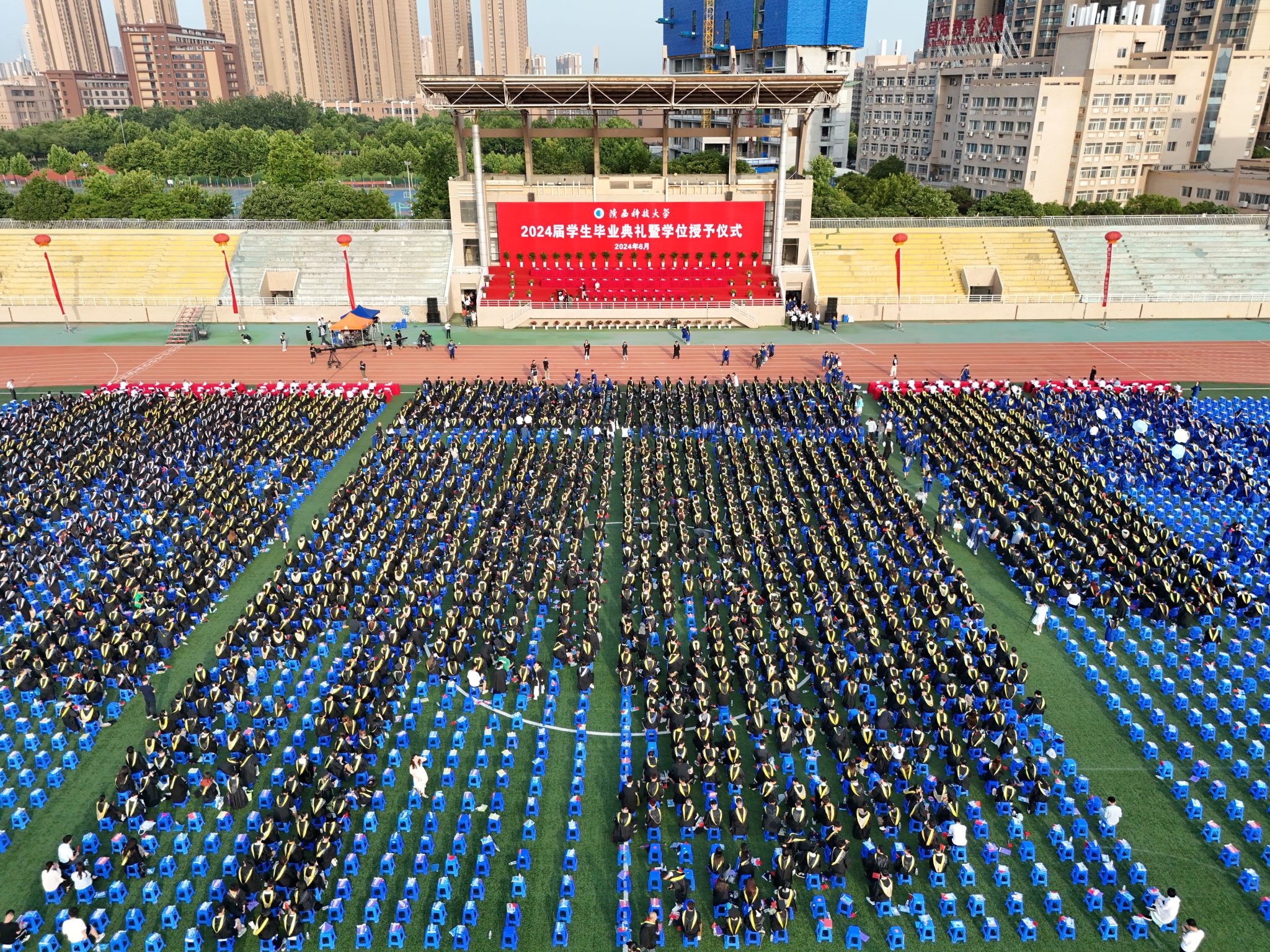 踏浪前行風(fēng)正勁,不負(fù)韶華爭朝夕。6月26日上午,時值學(xué)校66歲生日之際,我校2024屆學(xué)生畢業(yè)典禮暨學(xué)位授予儀式在標(biāo)準(zhǔn)田徑場隆重舉行。
