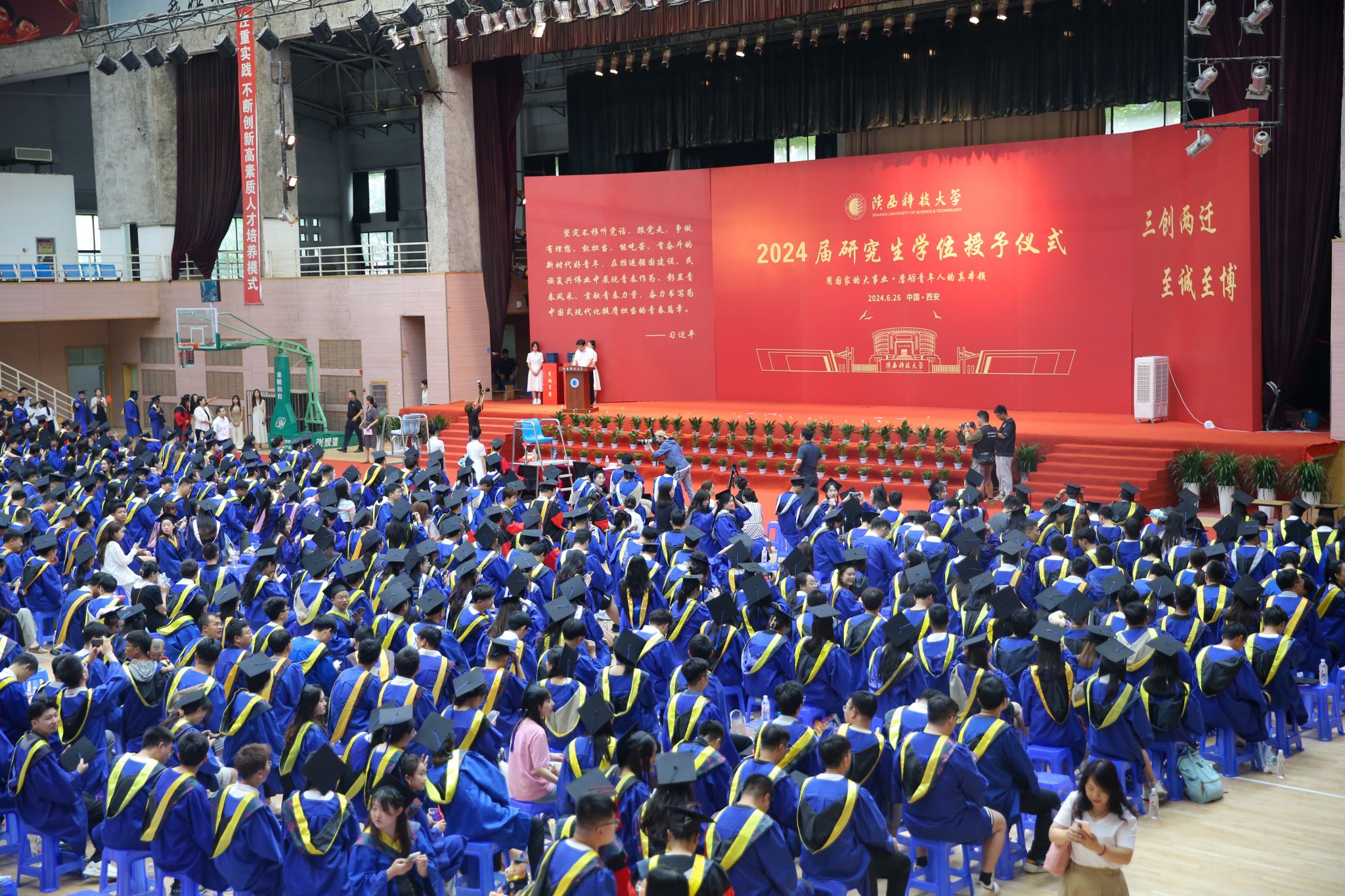 畢業(yè)典禮后,學(xué)校在文體館舉行了陜西科技大學(xué)2024屆碩士研究生學(xué)位授予儀式。校長李志健、副校長蒲永平為 1100余名博士研究生、碩士研究生一一撥穗、授證并合影留念。