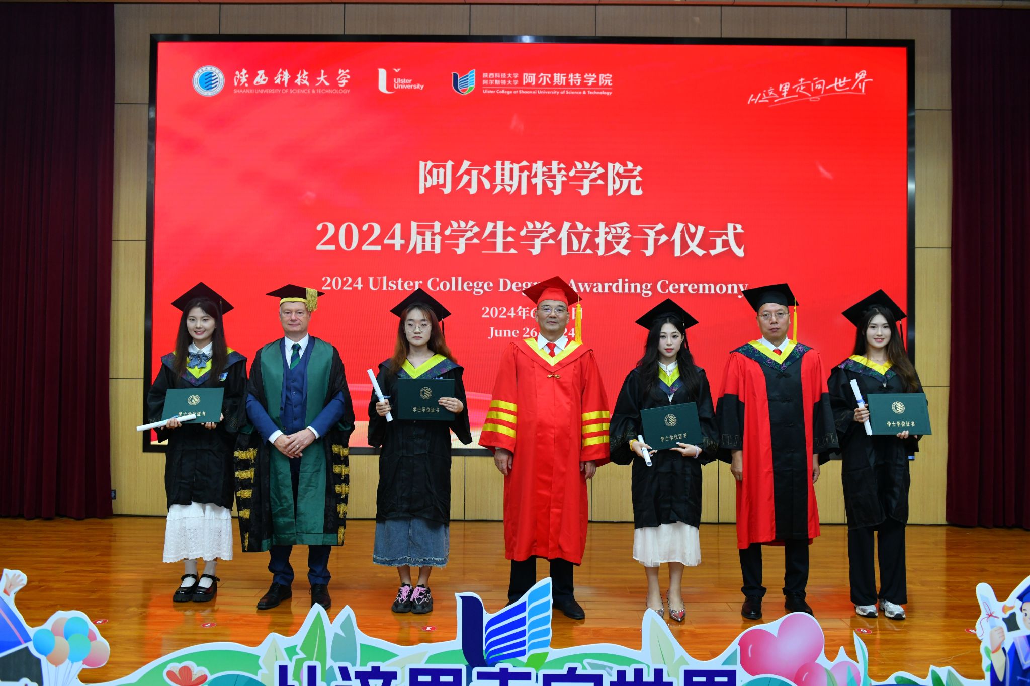 晴日暖風(fēng)生麥氣,綠陰幽草勝花時(shí)。6月26日下午,陜西科技大學(xué)阿爾斯特學(xué)院2024屆畢業(yè)生學(xué)位授予儀式在圖書(shū)館學(xué)術(shù)報(bào)告廳舉行。校長(zhǎng)李志健、阿爾斯特大學(xué)校長(zhǎng)Paul Bartholomew、副校長(zhǎng)蒲永平出席儀式,阿爾斯特大學(xué)計(jì)算機(jī)、工程與建筑環(huán)境學(xué)部副部長(zhǎng)Paul Hanna,我校國(guó)際合作與交流處、財(cái)務(wù)處、教務(wù)處等相關(guān)部門(mén)負(fù)責(zé)人,阿爾斯特學(xué)院領(lǐng)導(dǎo)班子成員、學(xué)院專(zhuān)業(yè)負(fù)責(zé)人、全體教職工、2024屆畢業(yè)生及家長(zhǎng)代表參加儀式。儀式由阿爾斯特學(xué)院常務(wù)副院長(zhǎng)薛朝華主持。