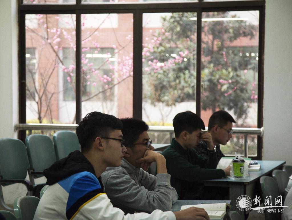 窗外,一樹(shù)寒梅綻放;窗內(nèi),學(xué)子們聚精會(huì)神。