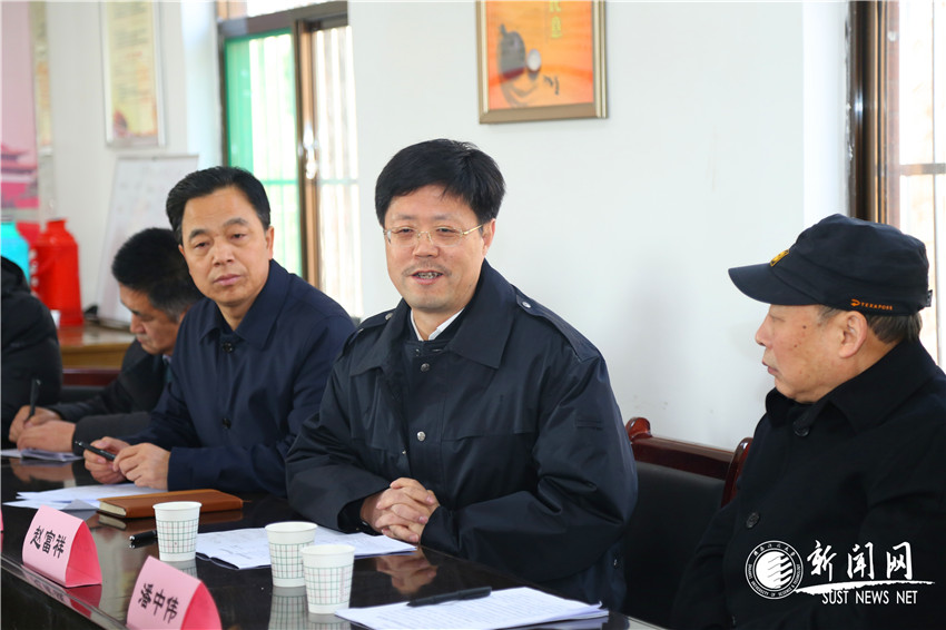 潘中偉認真聽取相關(guān)工作匯報,并不時詳細詢問。得知一年來村里不斷發(fā)生著可喜變化,尤其是2016年實際脫貧46戶143人,取得超額完成既定目標的工作成績。潘中偉很高興,對王石凹村近年來在基礎(chǔ)設(shè)施建設(shè)、改善民生、貧困戶產(chǎn)業(yè)發(fā)展、村容村貌建設(shè)等方面的發(fā)展給予了肯定,代表學(xué)校感謝印臺區(qū)區(qū)委、區(qū)政府、王石凹街道黨委對我校扶貧工作一直以來的關(guān)心與支持。他指出,脫貧攻堅是全黨實現(xiàn)“四個全面“戰(zhàn)略布局的重要組成部分,在當前全面建設(shè)小康社會的決勝階段,更是要舉全黨全社會之力打贏脫貧攻堅戰(zhàn)。校黨委班子把對王石凹村的扶貧開發(fā)工作當作一項重要的政治任務(wù)、一項事業(yè)來推進,印臺區(qū)委區(qū)政府從政策、資金等方面予以了大力支持,相信通過校區(qū)雙方的共同努力,王石凹村的發(fā)展一定會有新局面。潘中偉又強調(diào),此行還是慰問交流之行。校黨政領(lǐng)導(dǎo)班子自去年6月4日在王石凹村召開扶貧工作現(xiàn)場推進會,并與特別貧困戶結(jié)為“一對一”幫扶對子以來,雞年春節(jié)臨近之際再次回來看望,一方面是慰問全體鄉(xiāng)親、駐村“第一書記”和學(xué)校駐村扶貧工作隊,另一方面是了解村子特別是貧困戶的新發(fā)展新變化,掌握具體情況和發(fā)現(xiàn)解決仍然存在的困難。潘中偉還對下一步扶貧開發(fā)提出了工作展望,要結(jié)合學(xué)校自身實際,在校區(qū)雙方簽訂合作協(xié)議的基礎(chǔ)上,在農(nóng)產(chǎn)品深加工、陶瓷產(chǎn)品研發(fā)等產(chǎn)業(yè)結(jié)合點上充分發(fā)揮學(xué)校學(xué)科專業(yè)、產(chǎn)學(xué)研合作、科技創(chuàng)新、人才培養(yǎng)等資源優(yōu)勢,推動“果鄉(xiāng)瓷都、魅力印臺、科大參與、共創(chuàng)未來”合作共贏發(fā)展的美好愿景落到實處,為助力印臺區(qū)脫貧攻堅、實現(xiàn)經(jīng)濟社會轉(zhuǎn)型升級的發(fā)展任務(wù)做出更大的貢獻。