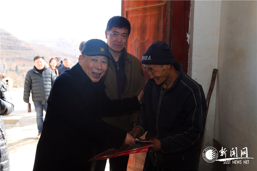 學(xué)校寒假伊始,并值此新春佳節(jié)即將來臨之際,而校領(lǐng)導(dǎo)心中的一份牽掛卻在距學(xué)校百余公里之外的定點扶貧對象——銅川山村王石凹,那里的扶貧工作進展如何?困難群眾能否過上一個溫暖、喜慶的春節(jié)?1月17日,帶著全校師生員工的深情厚誼,校領(lǐng)導(dǎo)潘中偉、楊欲曉、郭霄鵬、王樹茂、徐曉峰沿著崎嶇山路乘車近2個小時,來到王石凹村,交流座談、慰問村民、查看項目一個都不落下,帶著強烈的感情和社會責任擔當扶真貧、真扶貧。