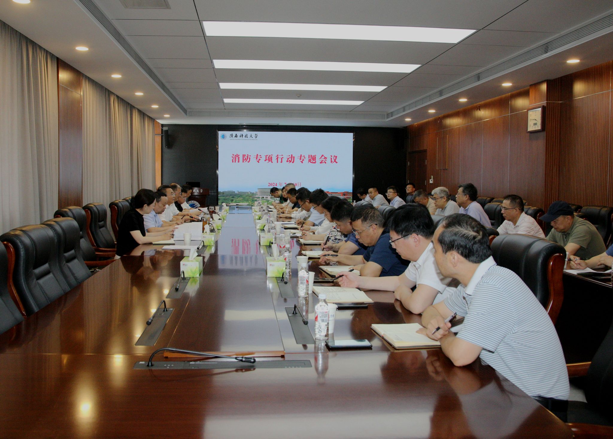 7月10日,學(xué)校召開建筑消防專項(xiàng)行動(dòng)專題會議,傳達(dá)上級會議精神,部署推進(jìn)學(xué)校相關(guān)工作。校黨委書記樊建武、校長李志健、黨委副書記郭強(qiáng),黨委副書記、紀(jì)委書記、監(jiān)察專員羅瑩,副校長黃劍鋒出席會議。校專項(xiàng)行動(dòng)領(lǐng)導(dǎo)小組各工作專班成員單位負(fù)責(zé)同志參加會議。校黨委副書記王道安主持會議。