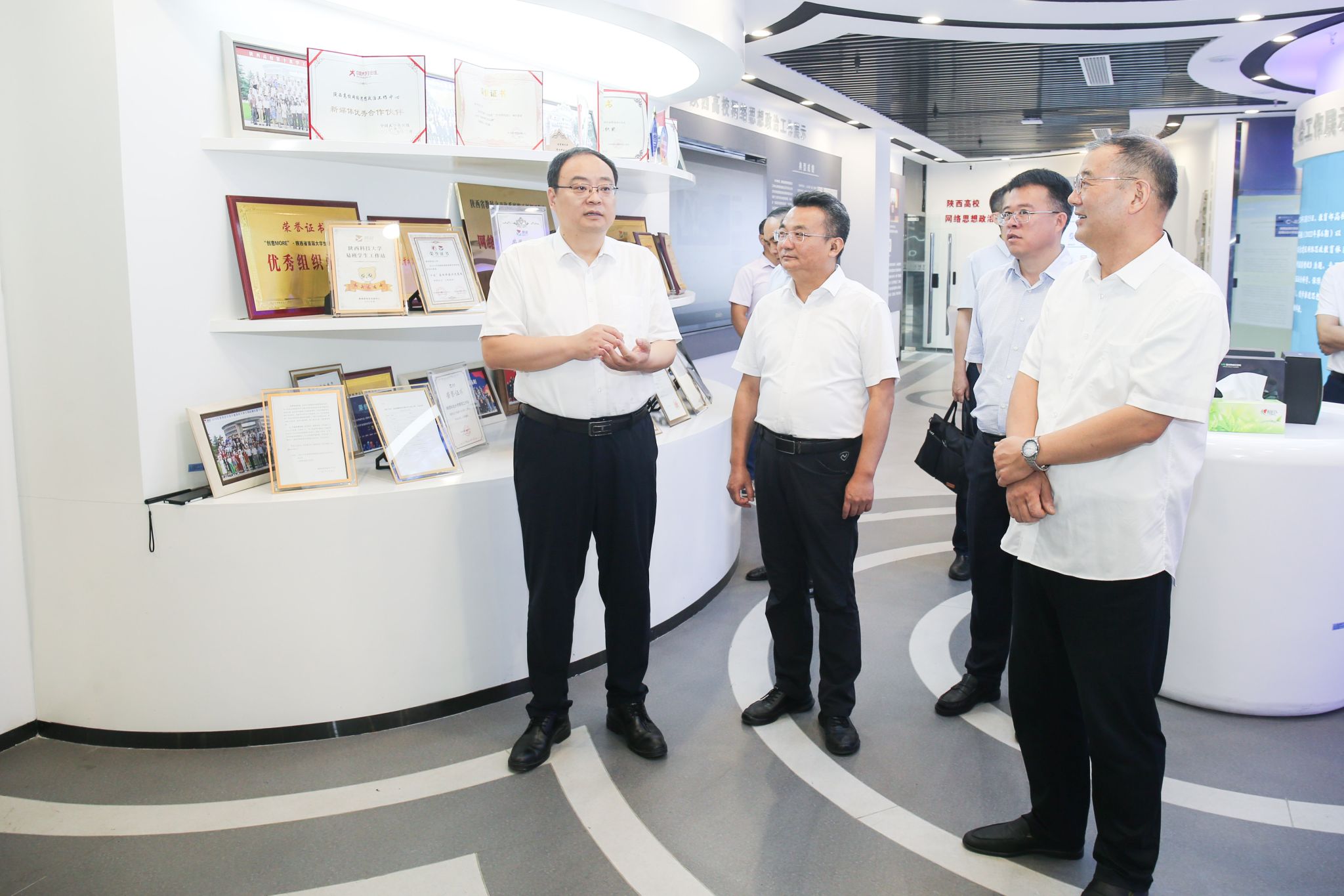 調研期間,王樹聲詳細詢問了學校開學各項工作情況,先后深入前沿科學與技術轉移研究院、網絡思想政治工作中心、中國輕工業(yè)博物館等單位進行實地查看,仔細了解了學校實驗室大型儀器設備的使用情況和辦學歷程、辦學特色。