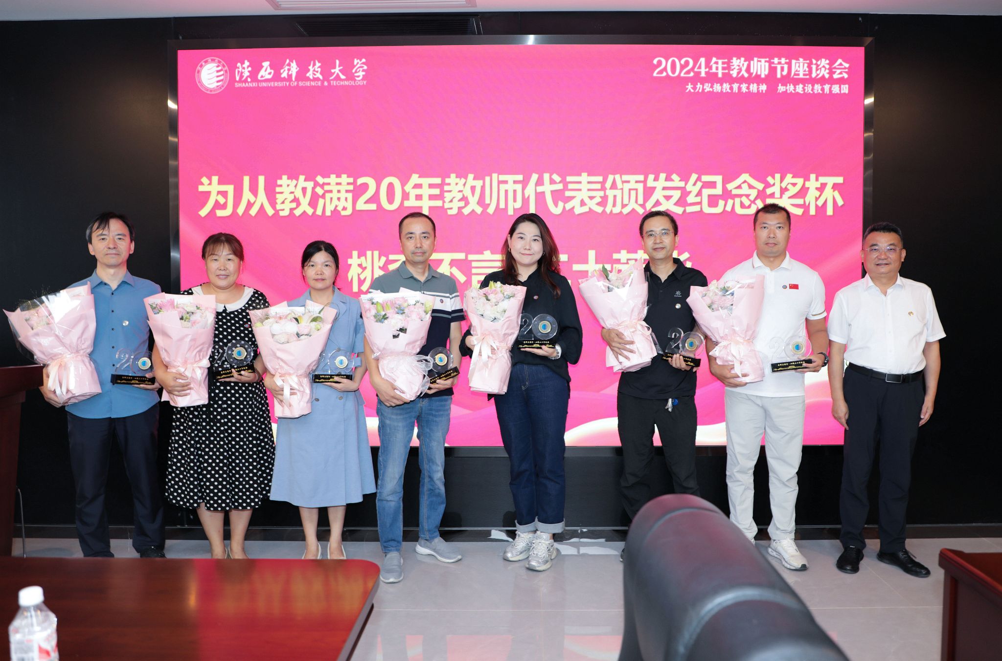 會上,校領導為從教滿10年、20年、30年教師代表頒發(fā)了紀念獎牌,送上了鮮花。來自各教學單位的15位一線教師代表圍繞會議主題先后發(fā)言。他們結合自己的教學、科研和學習經歷,深情講述了對教育事業(yè)的熱愛與執(zhí)著追求。
