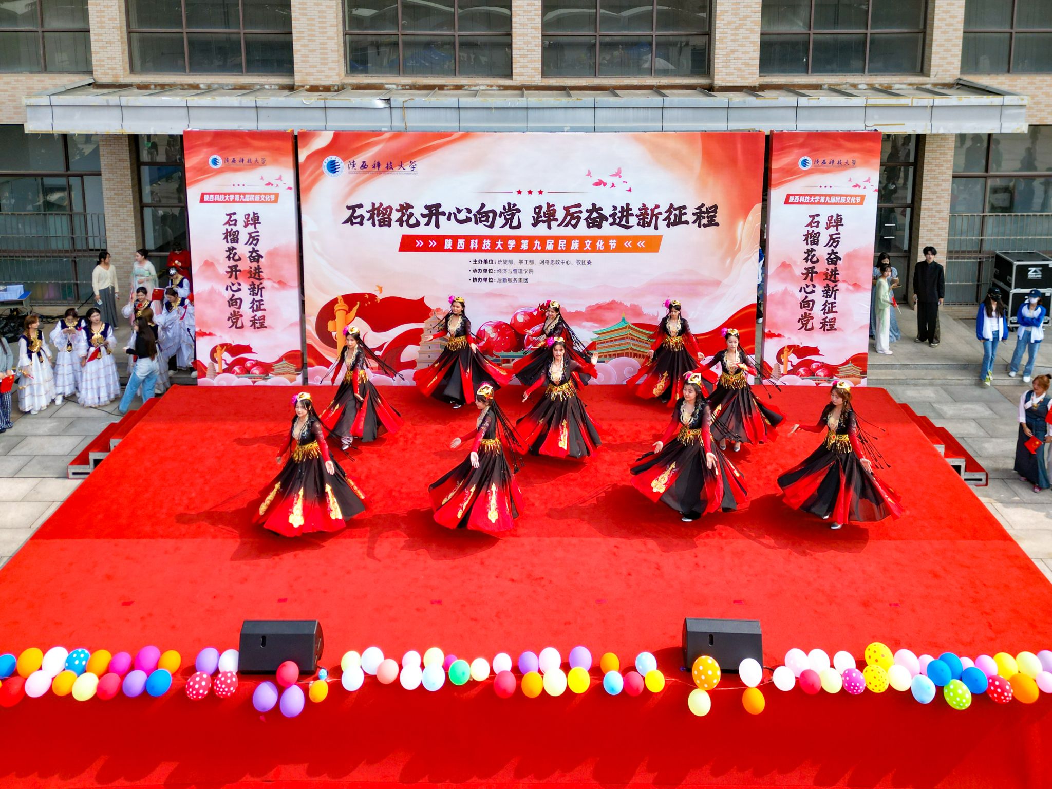 本屆民族文化節(jié)以“石榴花開心向黨,踔厲奮進新征程”為主題,以鑄牢中華民族共同體意識為主線,通過民族文化展位體驗和文藝匯演,讓師生在民族特色美食中感受“舌尖上的中國”,在民族文藝展演中體驗文化盛宴,在文化的交融碰撞中感受昂揚向上的中華民族精神和悠久燦爛的中華優(yōu)秀傳統(tǒng)文化。
