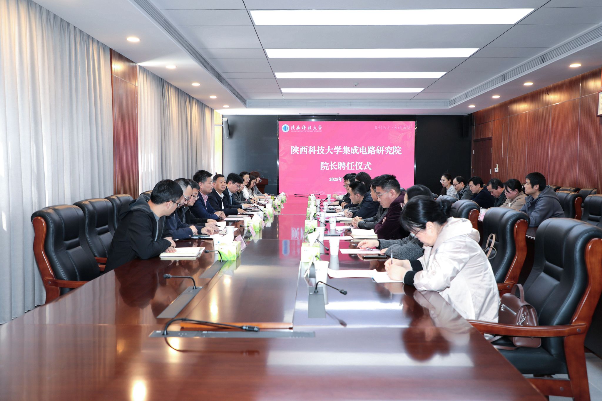 聘任儀式上,陸趙情介紹了韓興成教授的基本情況并宣讀了學(xué)校關(guān)于聘任韓興成為陜西科技大學(xué)集成電路研究院院長(zhǎng)的決定。