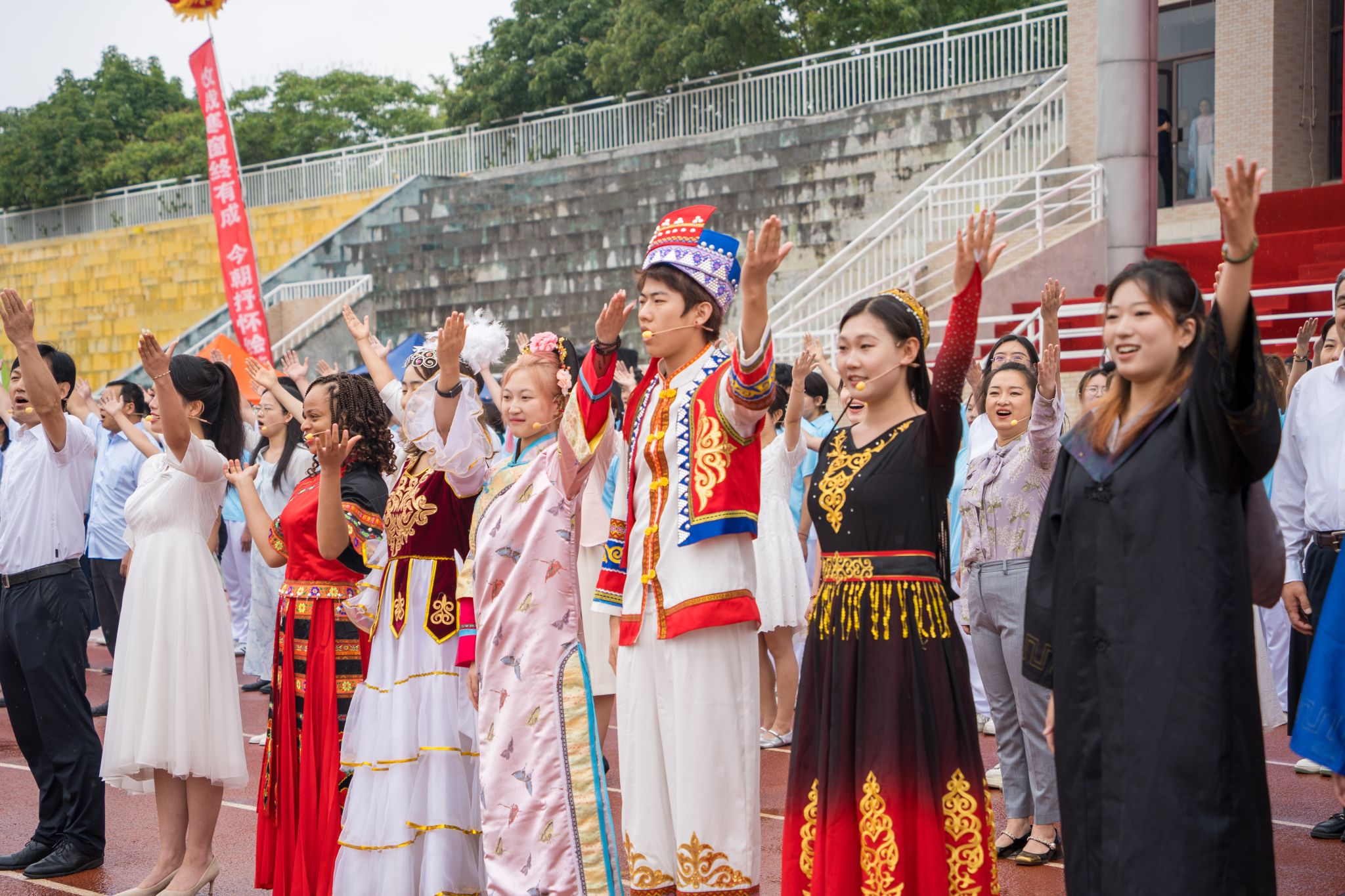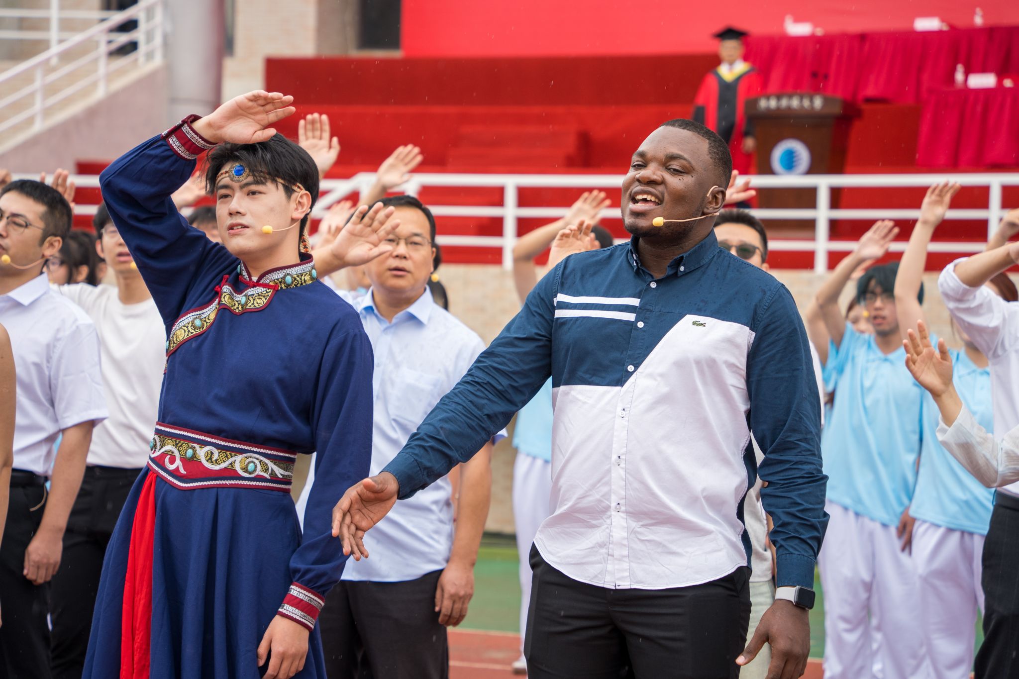 典禮最后,在畢業(yè)生即將啟程之際,全校16個學(xué)院(部)的教師代表與大學(xué)生藝術(shù)團(tuán)用歌聲為畢業(yè)生送上最美好的祝福。