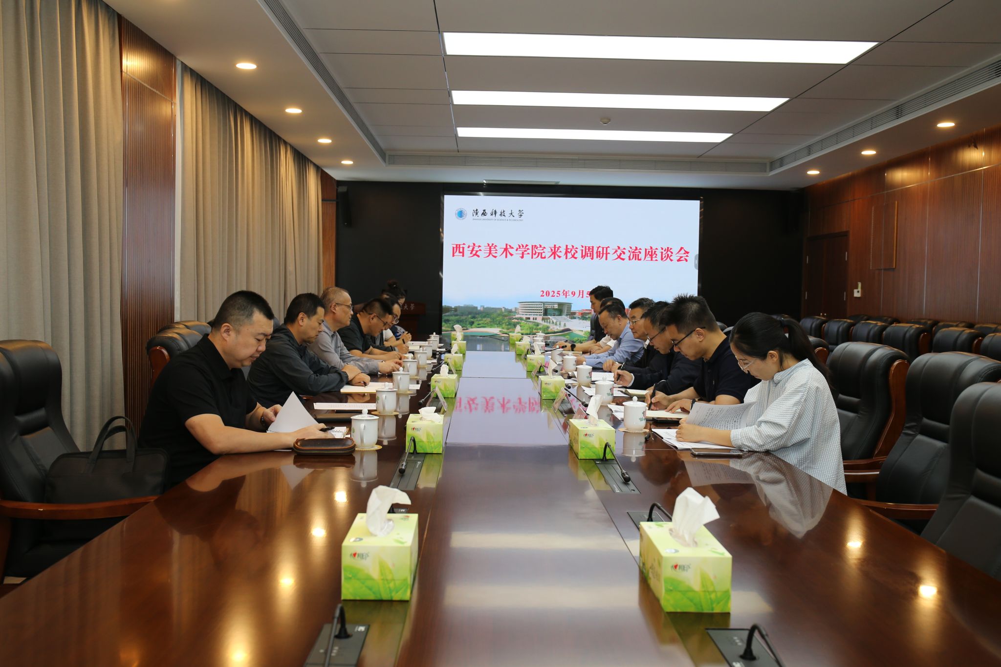 9月5日,西安美術(shù)學(xué)院黨委書(shū)記丁巨濤一行來(lái)陜西科技大學(xué)調(diào)研并開(kāi)展座談交流。陜西科技大學(xué)黨委書(shū)記樊建武出席會(huì)議并致辭,黨委副書(shū)記王道安主持會(huì)議。