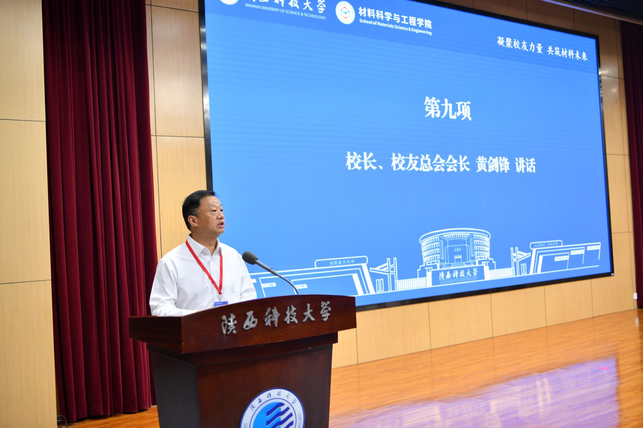 黃劍鋒在講話中向與會(huì)校友表示熱烈歡迎,并介紹了學(xué)校和材料學(xué)院近年來(lái)在學(xué)科建設(shè)、人才培養(yǎng)、科學(xué)研究等方面取得的成績(jī)。他強(qiáng)調(diào),校友是母校的寶貴資源和財(cái)富,更是母校建設(shè)發(fā)展過(guò)程中最可信賴(lài)與依靠的重要支持力量。希望廣大校友以校友會(huì)成立為契機(jī),傳承“三創(chuàng)兩遷”精神與“至誠(chéng)至博”校訓(xùn),講好母校故事,筑牢校友與母校間情感、事業(yè)、價(jià)值的聯(lián)結(jié)紐帶,將個(gè)人專(zhuān)業(yè)優(yōu)勢(shì)、行業(yè)資源與社會(huì)影響力轉(zhuǎn)化為助力學(xué)校“雙一流”建設(shè)與高質(zhì)量發(fā)展的堅(jiān)實(shí)力量。