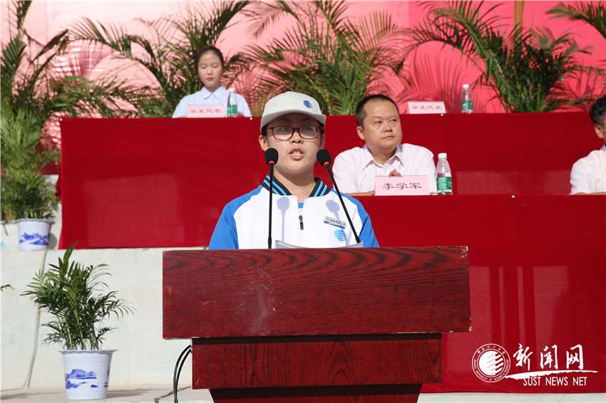 金風(fēng)送爽,碧空如洗,9月的科大校園洋溢著青春的笑語,我校2018級新生開學(xué)典禮暨軍訓(xùn)動員大會在標(biāo)準(zhǔn)田徑場舉行。校長馬建中,校黨委副書記王道安,校紀(jì)委書記王樹茂,副校長王學(xué)川、李志健、黃劍鋒,總會計師徐曉峰,校長助理鄭恩讓,各院系及有關(guān)職能部門負(fù)責(zé)人、教師代表和學(xué)生代表齊聚一堂,見證5628名學(xué)子成為“新陜科大人”的光榮一刻。大會由校黨委副書記溫鋒主持。