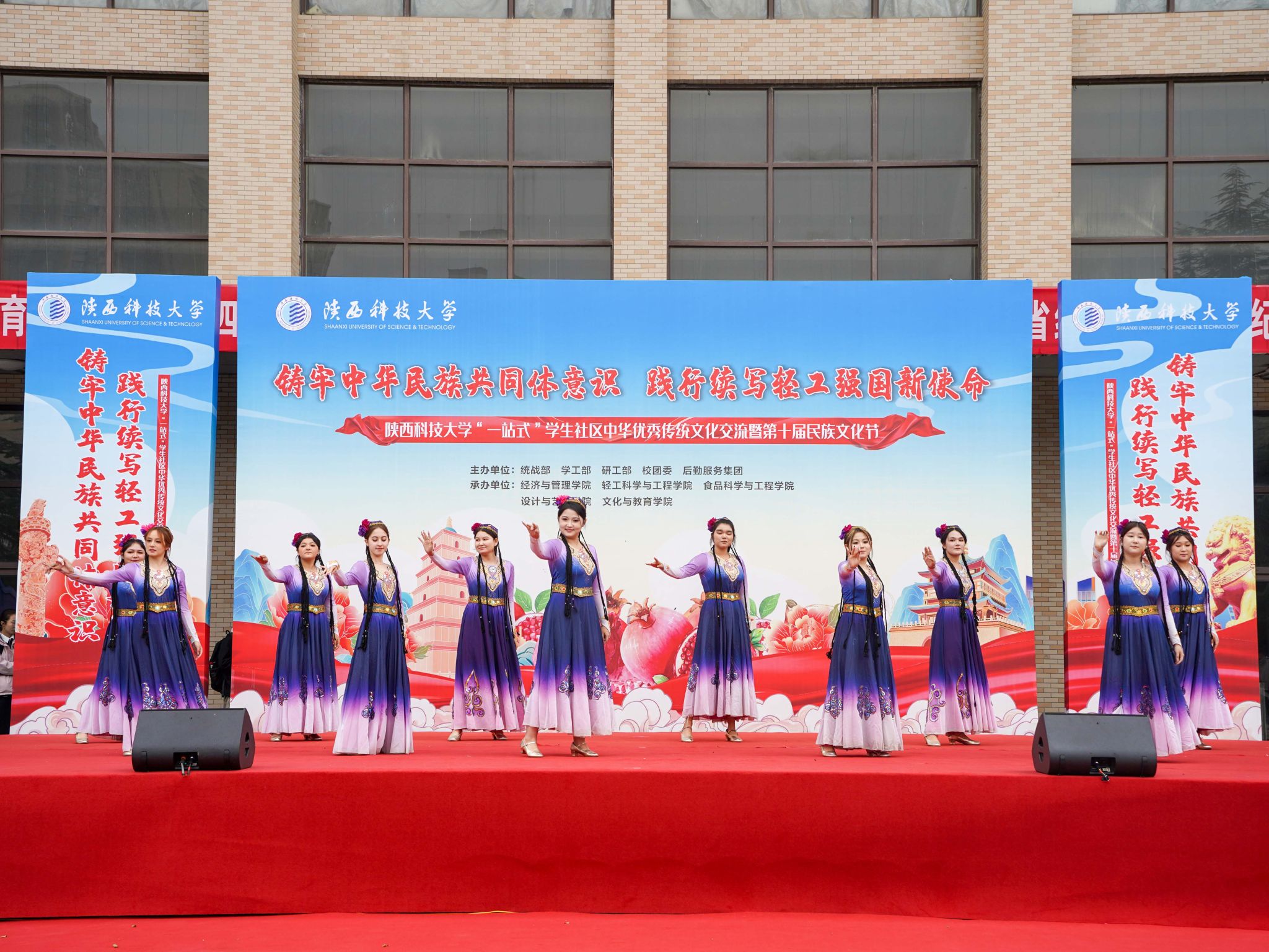 為深入學(xué)習(xí)貫徹習(xí)近平總書記關(guān)于加強和改進民族工作的重要思想,11月10日,陜西科技大學(xué)“一站式”學(xué)生社區(qū)中華優(yōu)秀傳統(tǒng)文化交流暨第十屆民族文化節(jié)順利舉行。黨委書記樊建武,黨委副書記王道安、李學(xué)軍,副校長黃海峙及相關(guān)部門負責(zé)人與各民族師生齊聚一堂,共同參與此次文化盛會。