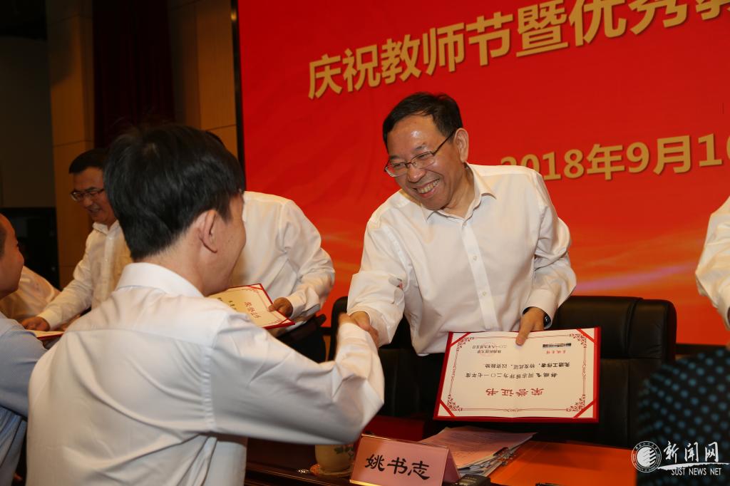 校黨委書記姚書志向2017年度優(yōu)秀教師及先進(jìn)工作者頒發(fā)榮譽證書