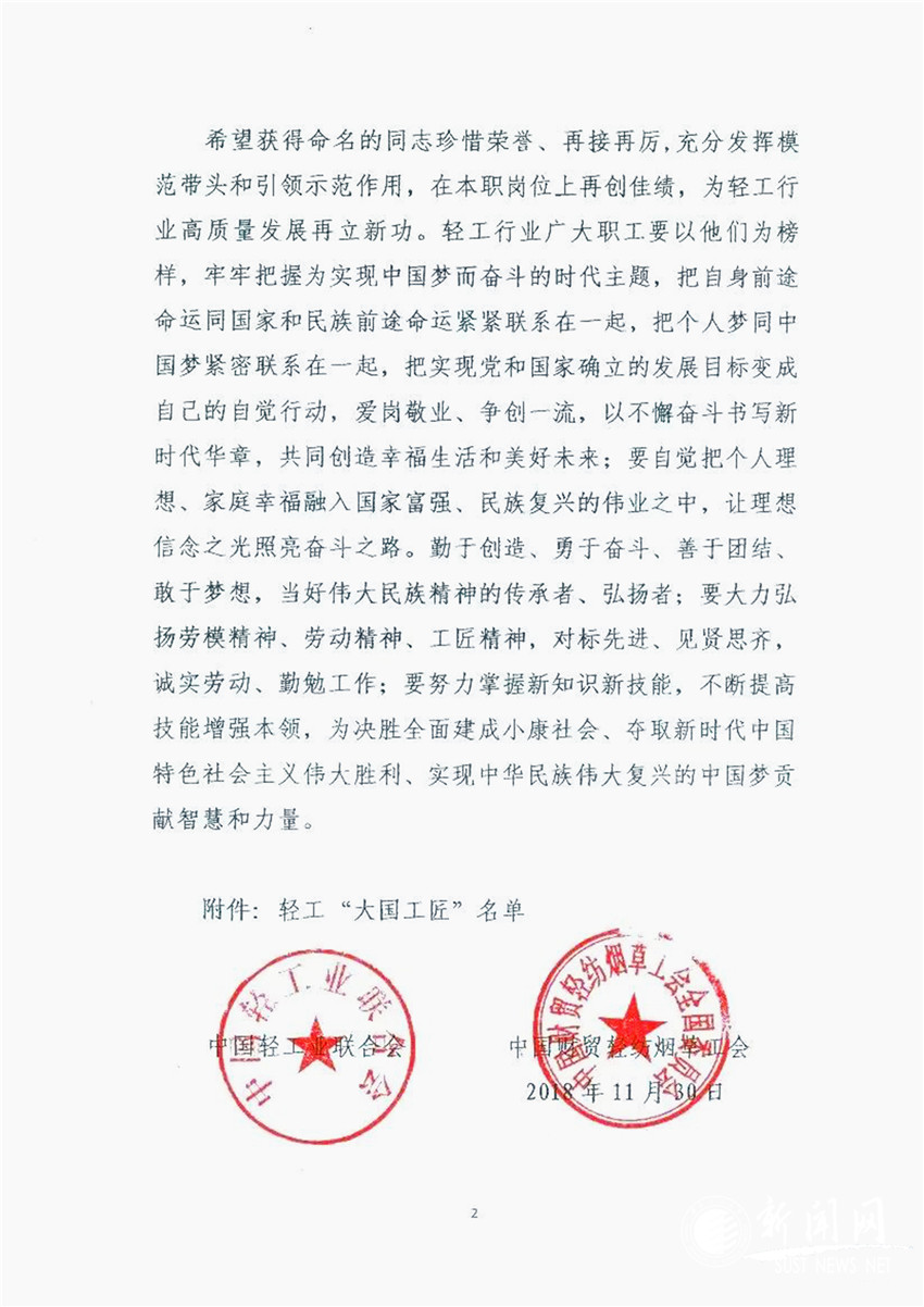 通過輕工“大國工匠”推薦學習活動,增強工匠精神的吸引力、感染力、影響力,發(fā)揮先進模范人物的示范引領(lǐng)作用,培養(yǎng)執(zhí)著專注、精益求精、一絲不茍、追求卓越的職業(yè)素養(yǎng),著力營造勞動光榮、知識崇高、人才寶貴、創(chuàng)造偉大的社會氛圍,激勵全行業(yè)廣大職工牢固樹立勞動最光榮、勞動最崇高、勞動最偉大、勞動最美麗的觀念,引導廣大輕工職工立足本職、愛崗敬業(yè),進一步換發(fā)勞動熱情,釋放創(chuàng)造潛能,為實現(xiàn)“十三五”規(guī)劃目標任務,早日實現(xiàn)輕工強國夢作出新的更大貢獻。