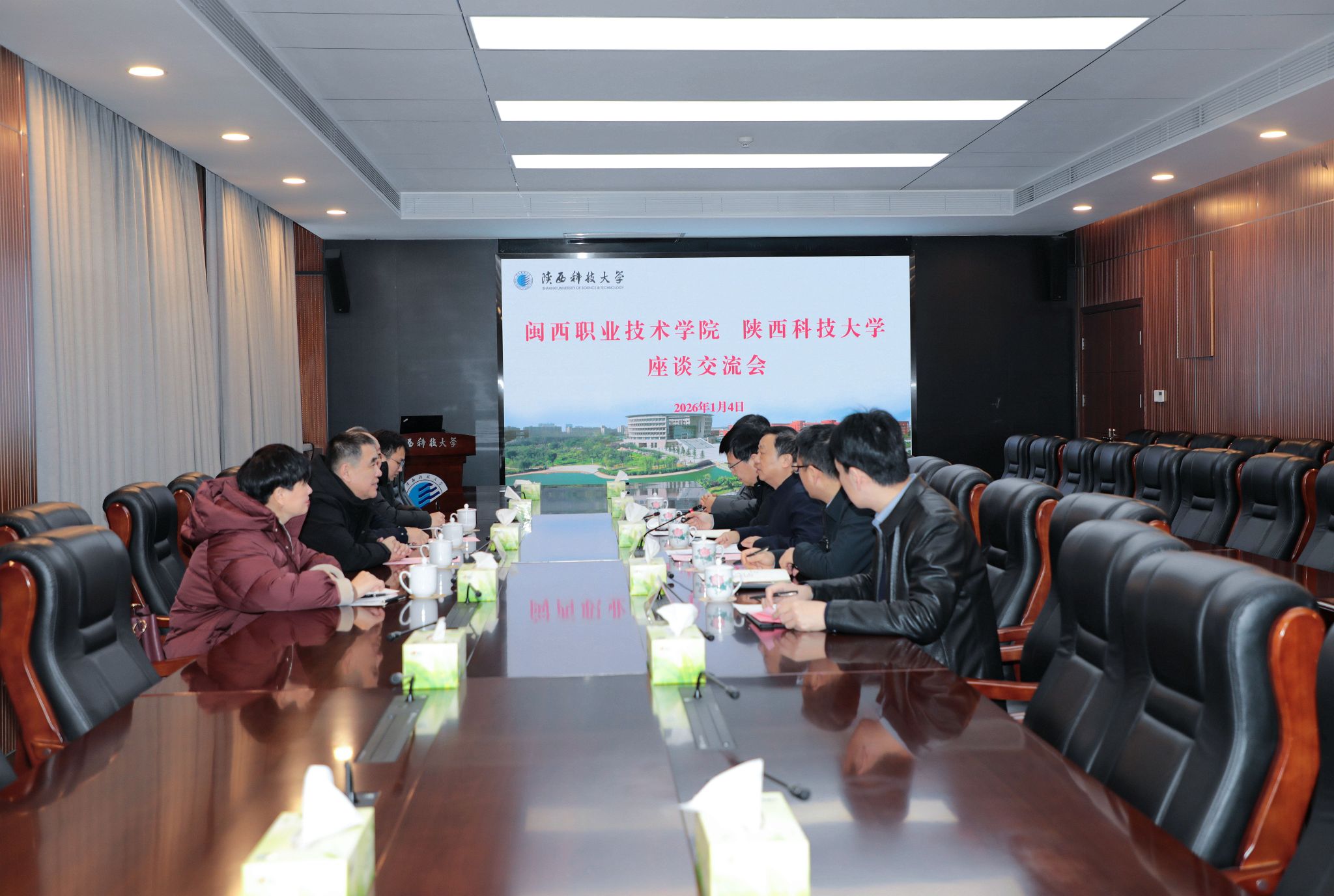 1月4日,閩西職業(yè)技術(shù)學(xué)院黨委書記盧偉耀(材料86級(jí)校友、著名文化創(chuàng)意與策劃人)一行來陜西科技大學(xué)調(diào)研交流。陜西科技大學(xué)黨委書記樊建武會(huì)見盧偉耀一行,雙方圍繞發(fā)揮學(xué)科專業(yè)優(yōu)勢(shì)、拓展合作領(lǐng)域等進(jìn)行交流。校長(zhǎng)黃劍鋒出席座談會(huì)并致辭,副校長(zhǎng)陸趙情參加座談會(huì)。