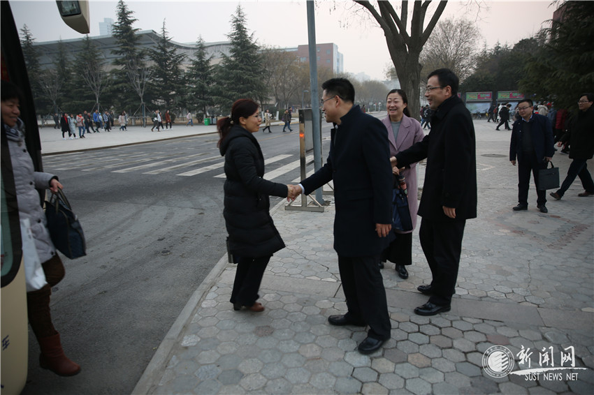 清晨7時許,校長馬建中、主管教學(xué)工作副校長郭霄鵬一行就來到F座教學(xué)樓前校車??空?,等待今天第一批從咸陽校區(qū)前來的上課教師。7:40,校車按時到站,剛一停穩(wěn),馬建中便快步來到車前與下車的教師們一一握手,“辛苦啦!一大早從咸陽校區(qū)趕過來?!边@親切的問候驅(qū)散了早春料峭的寒意。