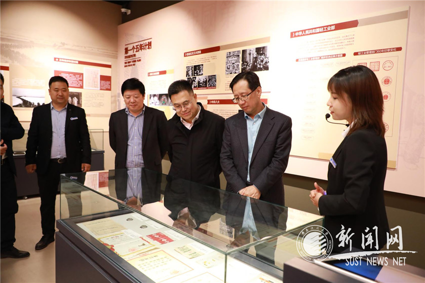 校長(zhǎng)馬建中(右三)、副校長(zhǎng)王海燕(右四)陪同孫科等一行三人參觀了校史館、中國(guó)輕工業(yè)博物館及西遷主題展