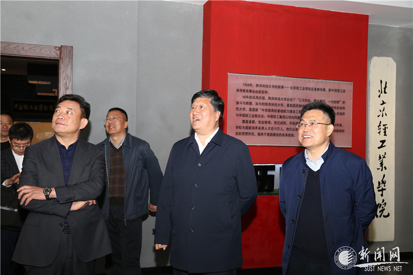 4月12日,陜西省教育廳廳長王建利、副廳長王紫貴一行在參加陜西省2019屆高校畢業(yè)生精準(zhǔn)就業(yè)專場招聘會暨“‘西’納英才‘安’心樂業(yè)百萬大學(xué)生留西安”就業(yè)創(chuàng)業(yè)招聘會有關(guān)活動之際,抽出時間專題調(diào)研指導(dǎo)中國輕工業(yè)博物館、校史館,校長馬建中、黨委副書記溫鋒陪同調(diào)研。